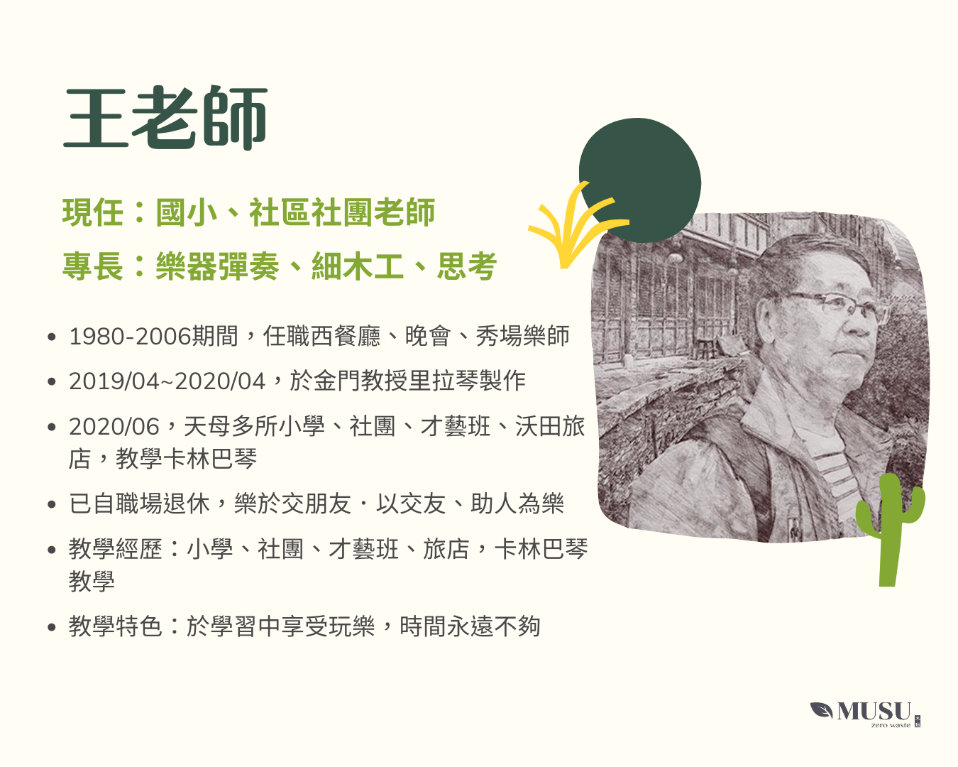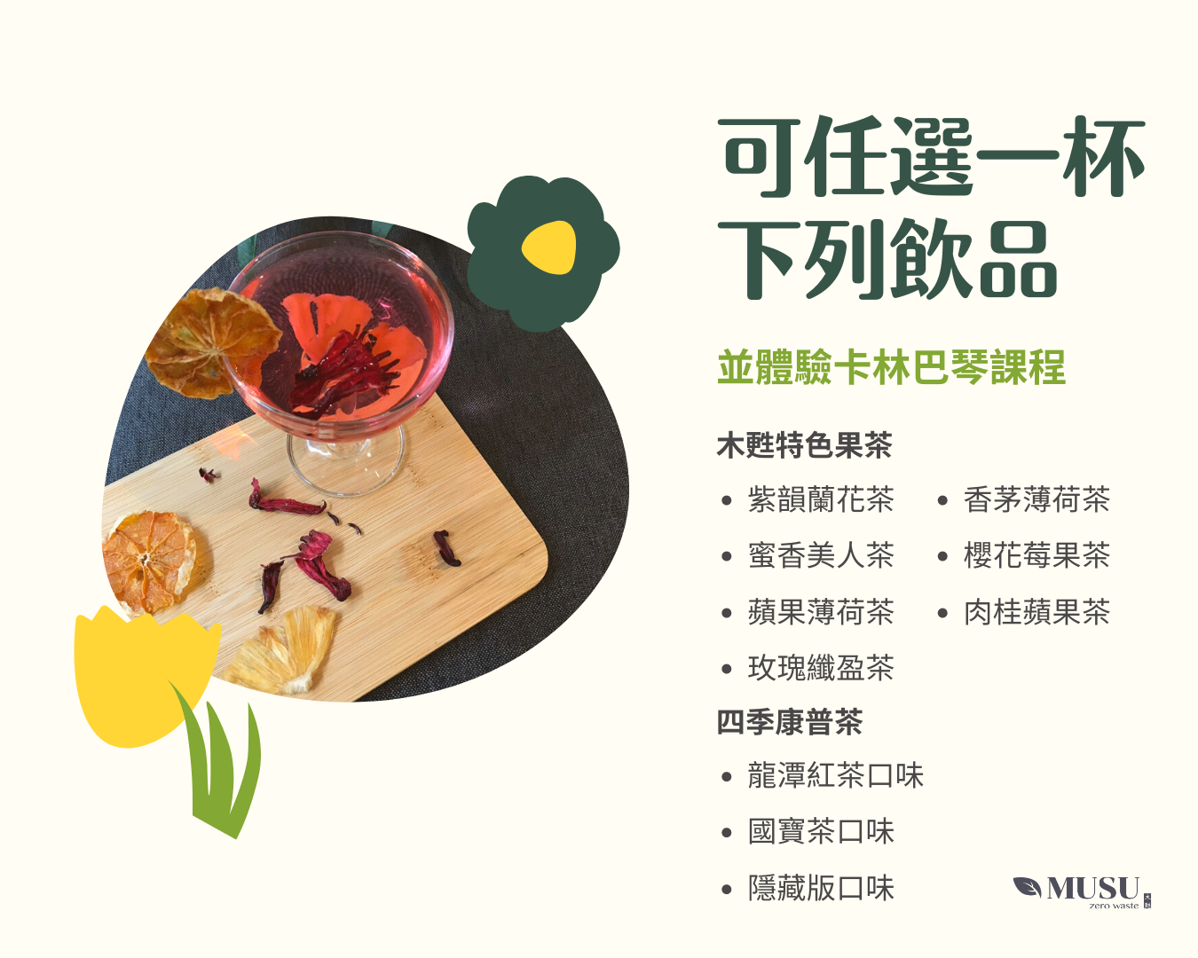 現任多個國小、社區社團教學卡林巴琴的王老師即將於7/6(四)、7/20(四)14:00-15:30開體驗課程!大家可以在木甦喝一杯任選果茶或康普茶,並跟老師學習手工卡林巴琴彈奏技巧😆邊品嚐木甦果茶,邊被卡林巴琴精靈般的樂音洗滌心靈🎵