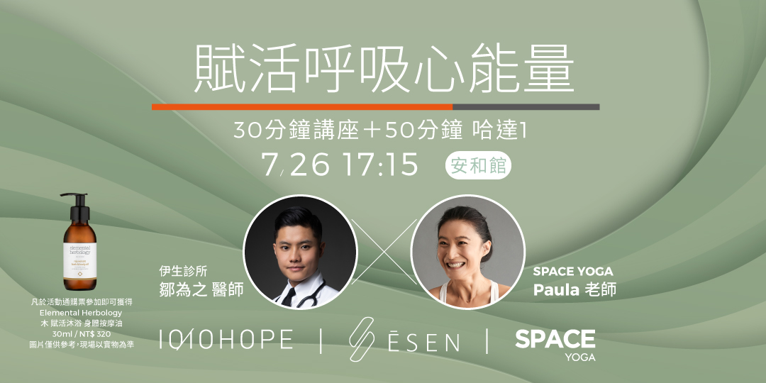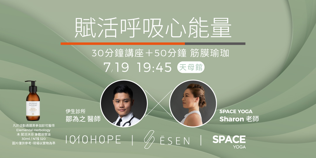 課程的前 30 分鐘將由 ESEN 鄒為之醫生帶來一場精彩的講座,從日常就可以掌握自己身心健康的方法,從香氛、按摩到運動、幫你了解整體健康的關聯性。