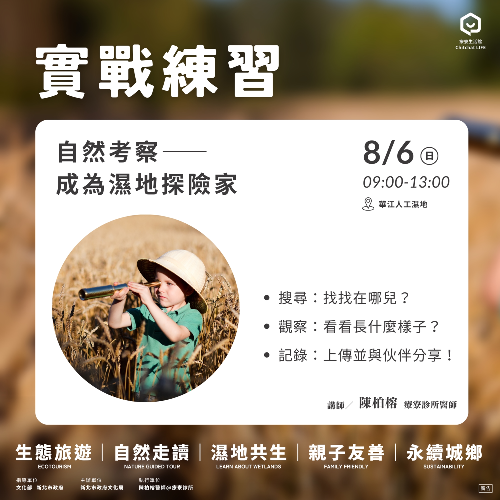 本計畫為112年度新北市政府文化局社區營造一般性補助計畫,計畫名稱為「守護華江人工濕地 ~ 療寮診所的社區營造」,由療寮診所陳柏榕醫師主持,帶領診所團隊執行。