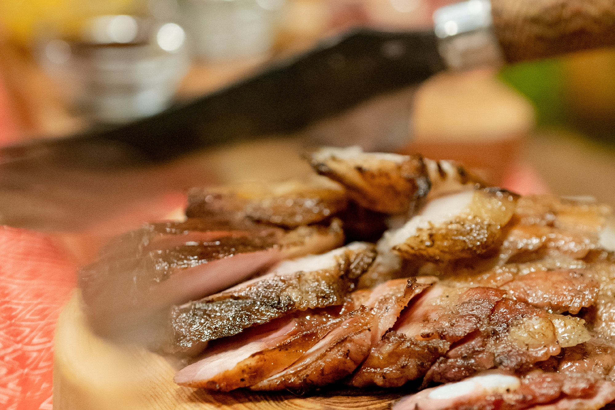 空氣中瀰漫著煙燻肉品的碳香味