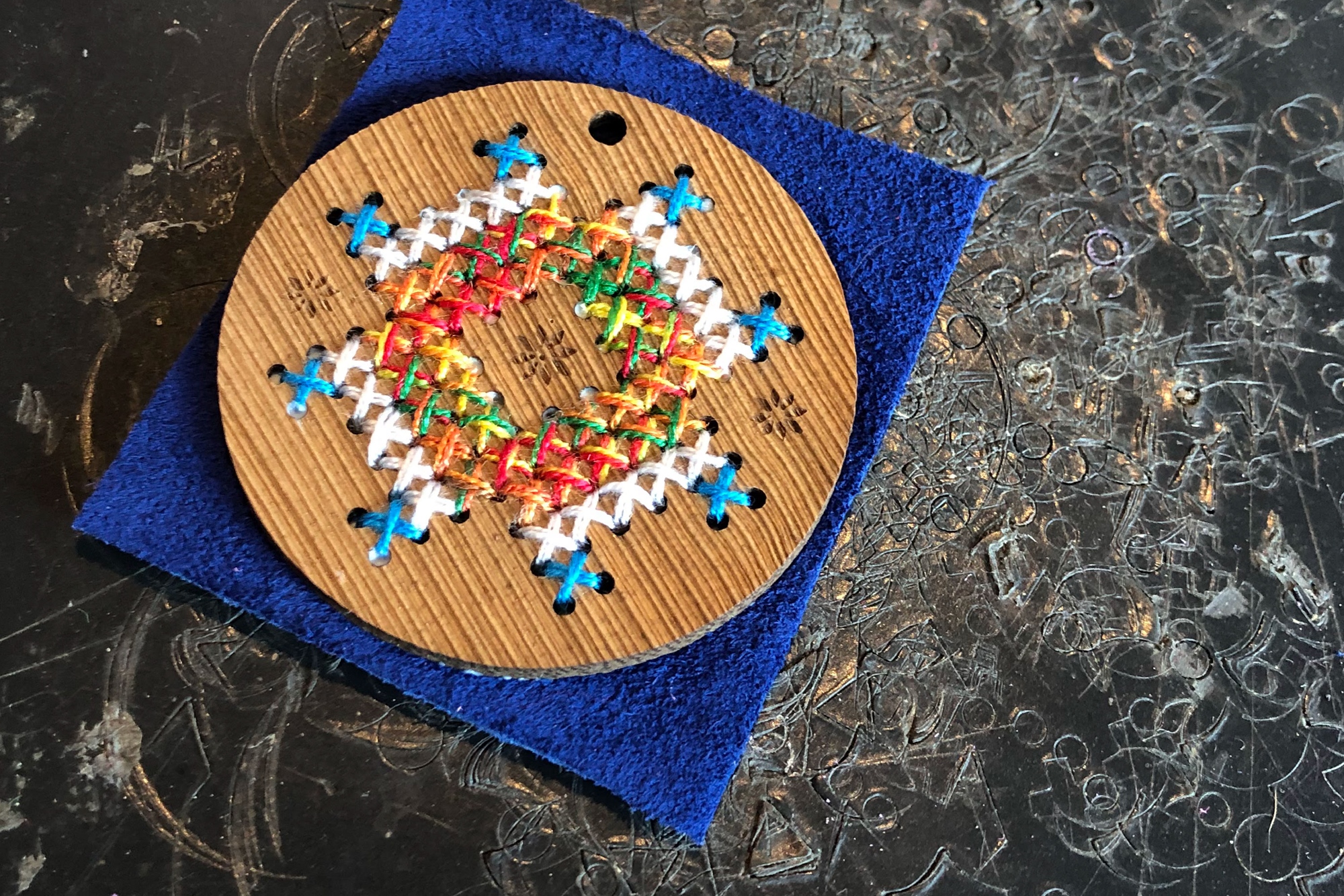 十字繡鑰匙圈 Cross-stitched Leather Pendant