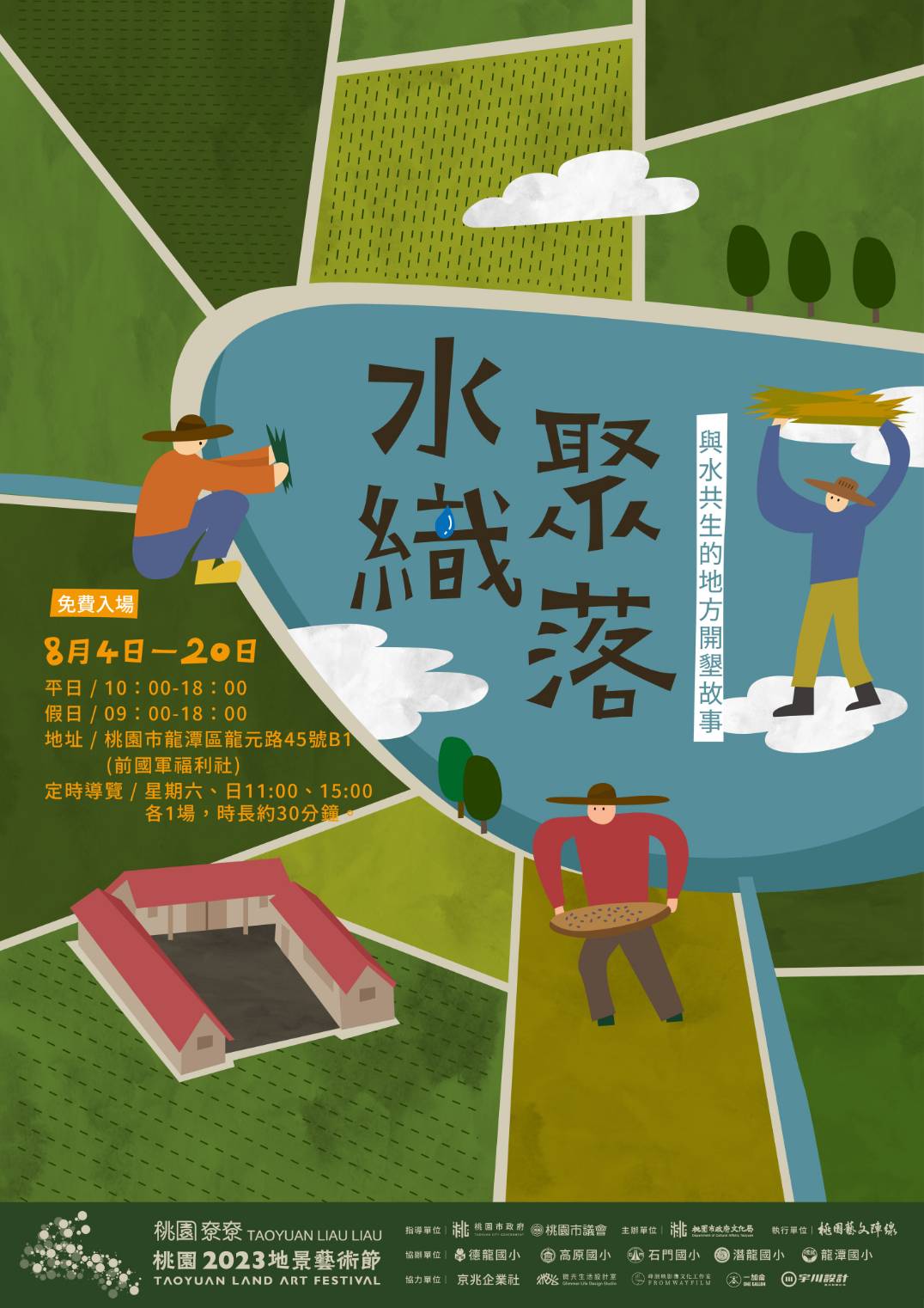 「水織聚落」描述著龍潭地區從水文到聚落的發展歷程,陂塘水圳、天然溪流,再到挑水古道等,皆為形塑龍潭水織聚落的重要元素,我們也在不同型態的水文中,看出「水」在龍潭地區的重要性。地方聚落、經濟產業與文化地景,皆因水而落地生根。不管是天然的水資源,或是人為的水利設施,這些水文系統不僅為土地提供重要的灌溉水源,同時也建構出獨特的人文地景。