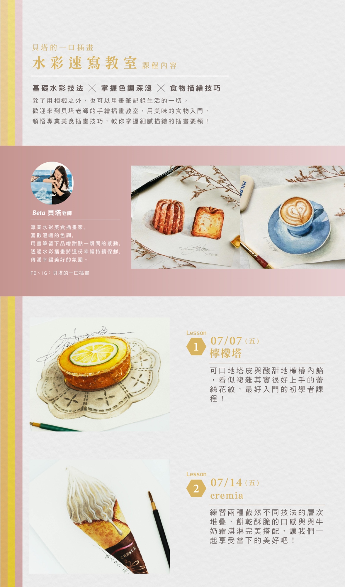 【台中市政店】貝塔的一口插畫-7月水彩速寫教室-甜點派對