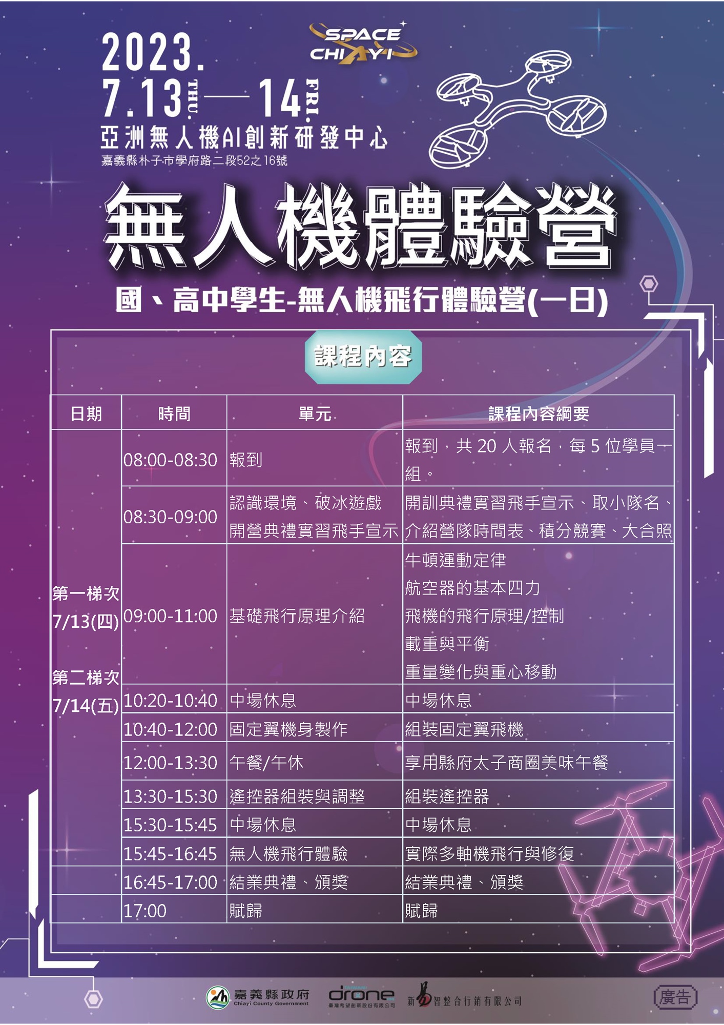 全國對無人機有興趣之國高中學生(含應屆畢業生),嘉義縣民優先