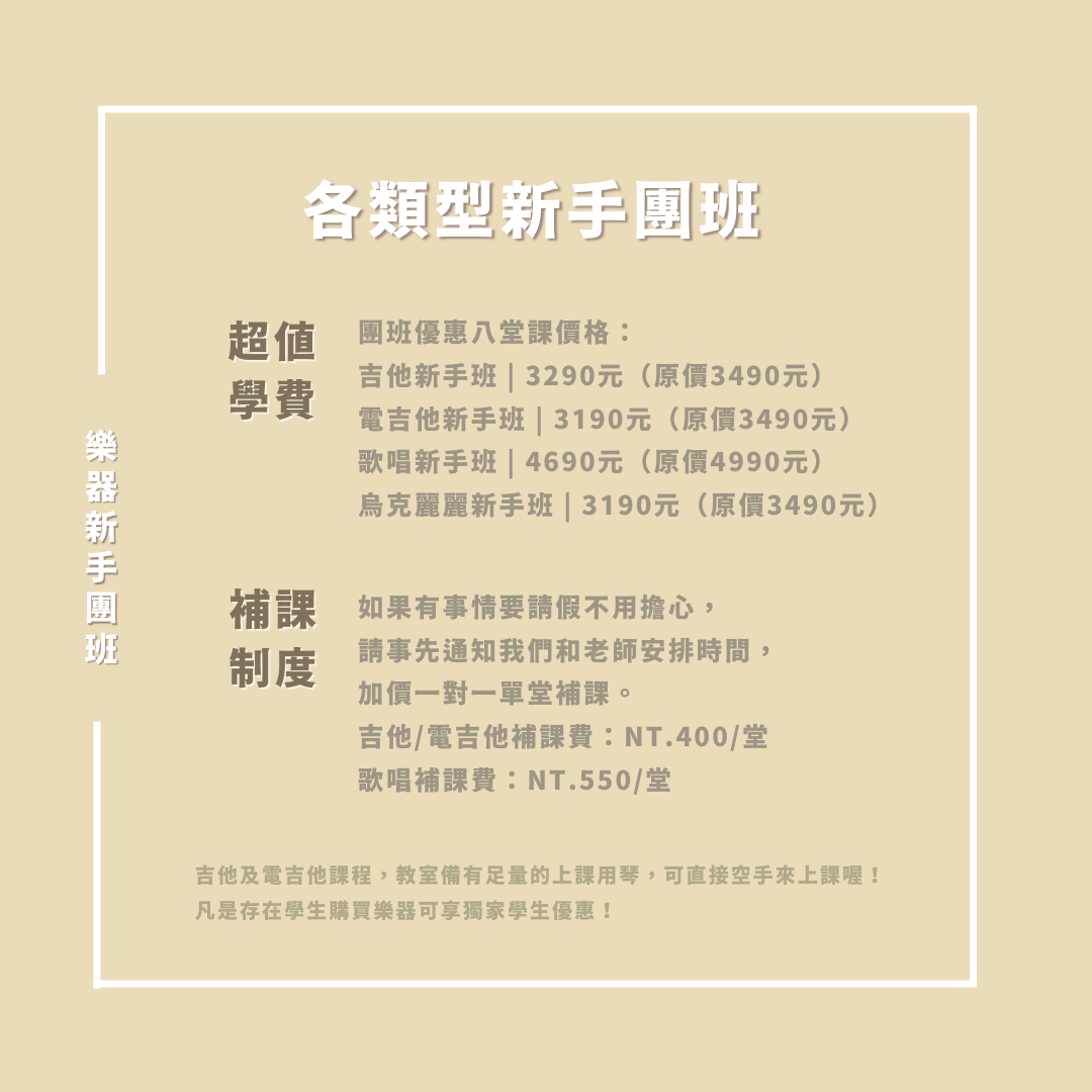 🎵 電、木吉他都已幫你準備,兩手空空就可開始上課