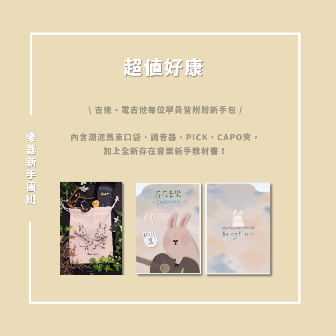 🎵 木吉他、電吉他團班皆附贈新手包(市價 700 元)、存在音樂新手教材書,