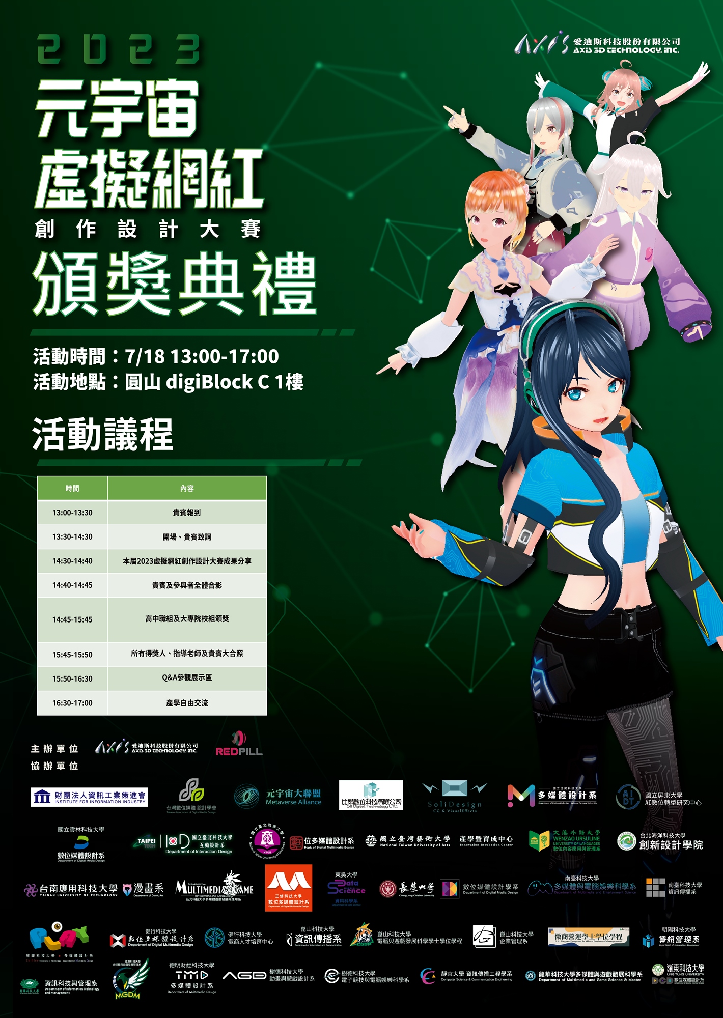 - 活動名稱:2023元宇宙虛擬網紅設計創作大賽-頒獎典禮
