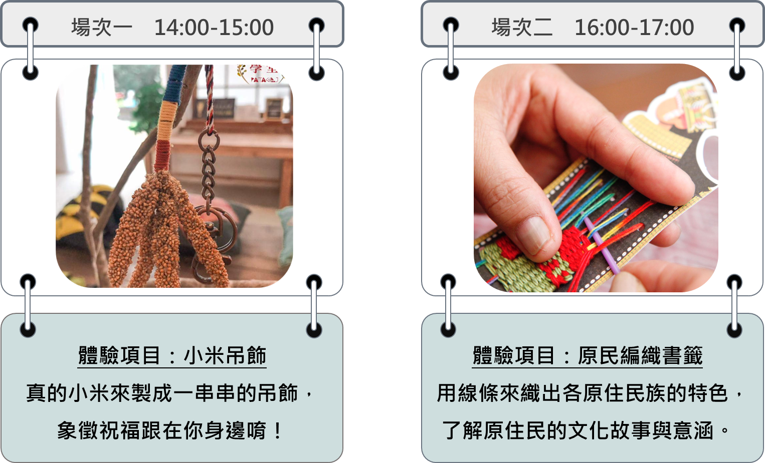 ➤體驗時間:14:00-15:00、16:00-17:00