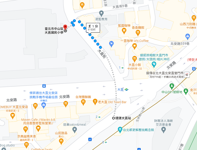 ※集合地點為臺北市中山區大直國民小學 視聽教室(台北市中山區大直街2號),可搭乘捷運至大直站1號出口,再步行約1分鐘即可抵達。