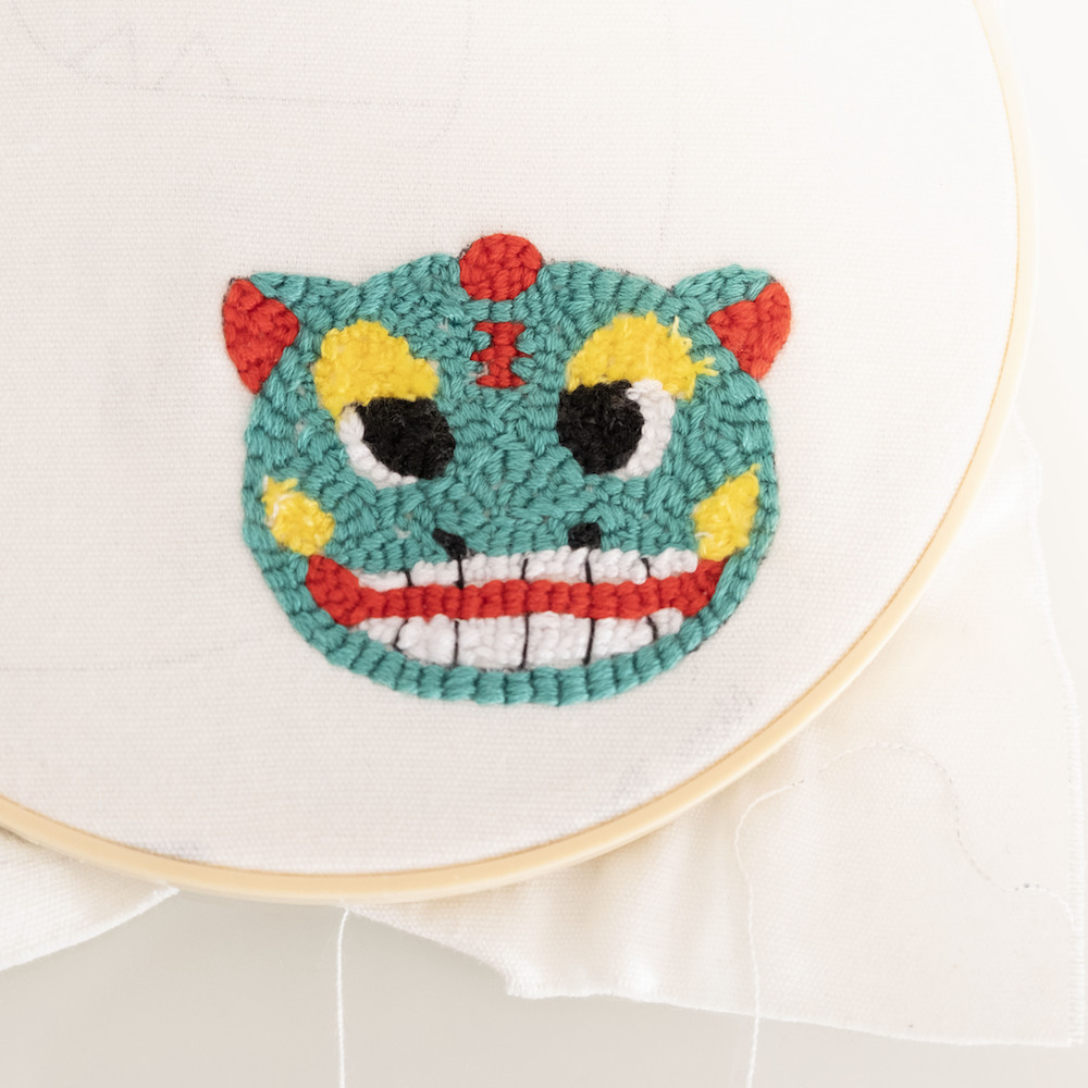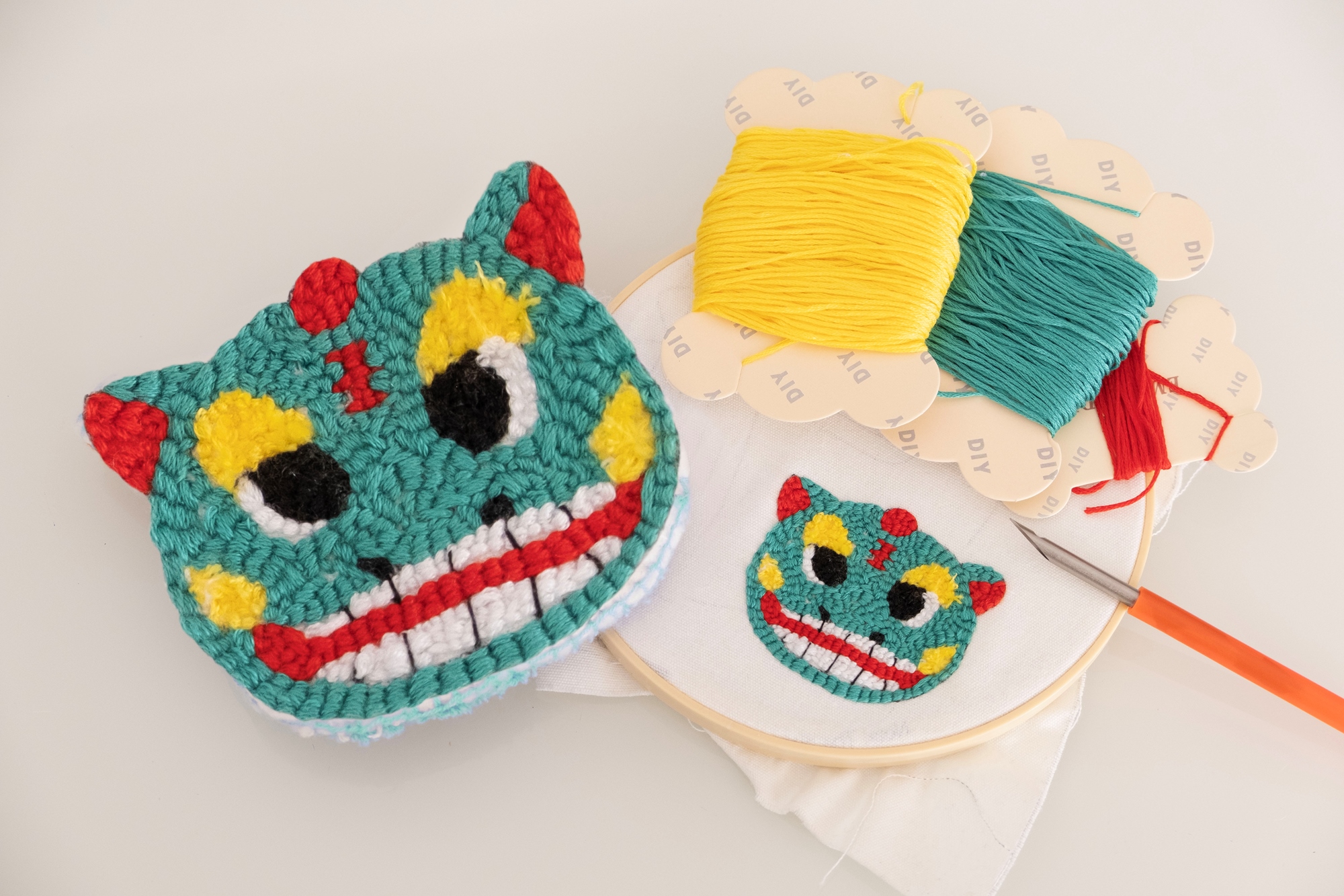 這次我們將利用毛線戳刺的手法,透過戳針一筆一筆的在布料上戳出客家獅的樣子,在勾勒圖案的過程中,還可以同時了解客家獅的特色。