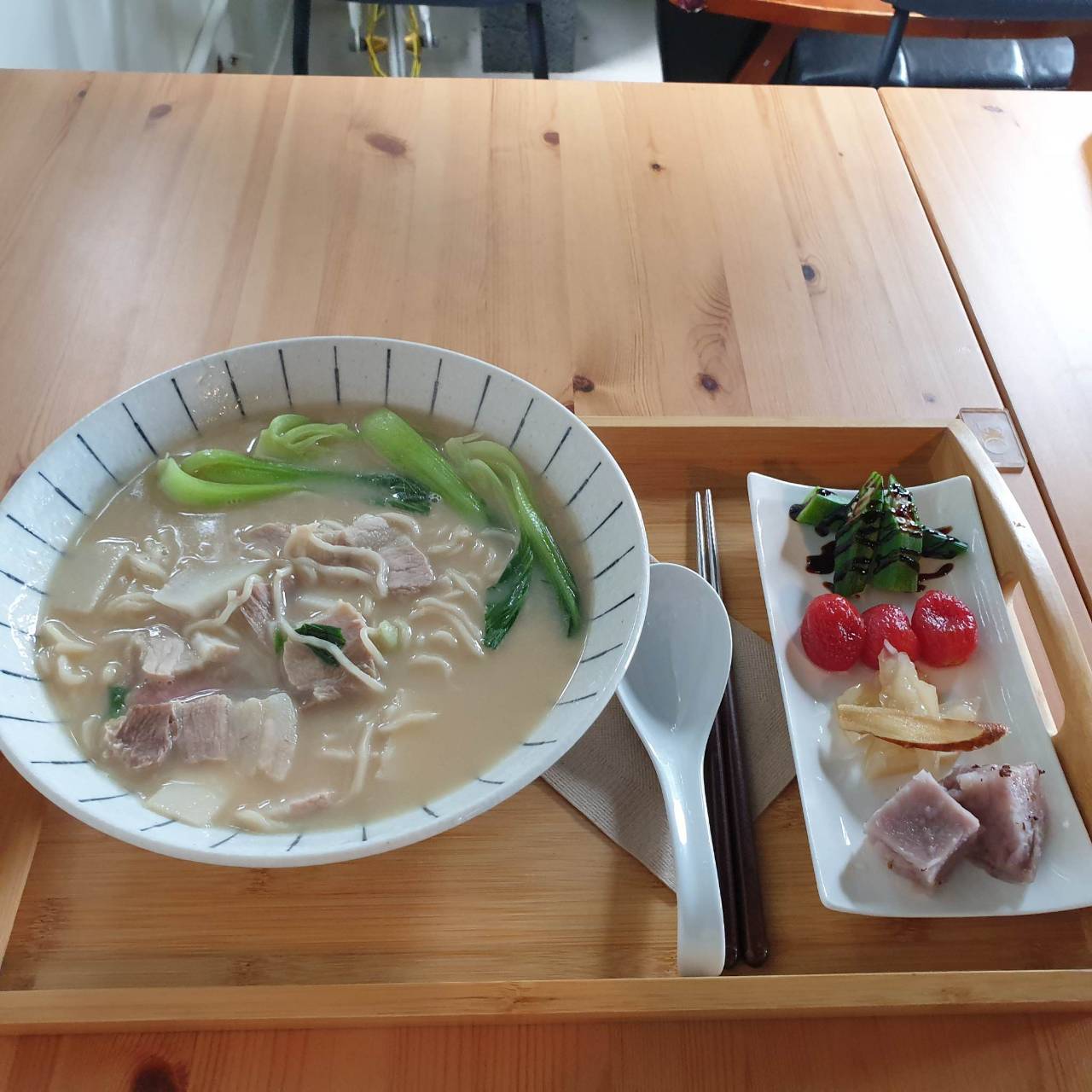 ✿ 主廚的菜飯、煨麵品嚐,有主食、湯和水果,三天菜色不同