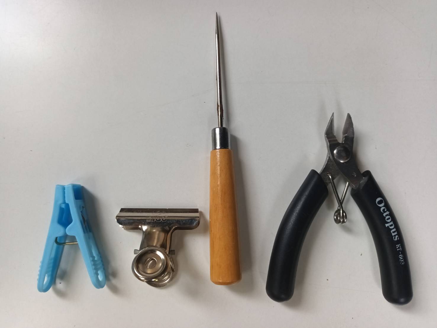 需自備曬衣夾*8個、文件夾*8個、錐子*1個、斜口鉗*1個(如以下圖示)