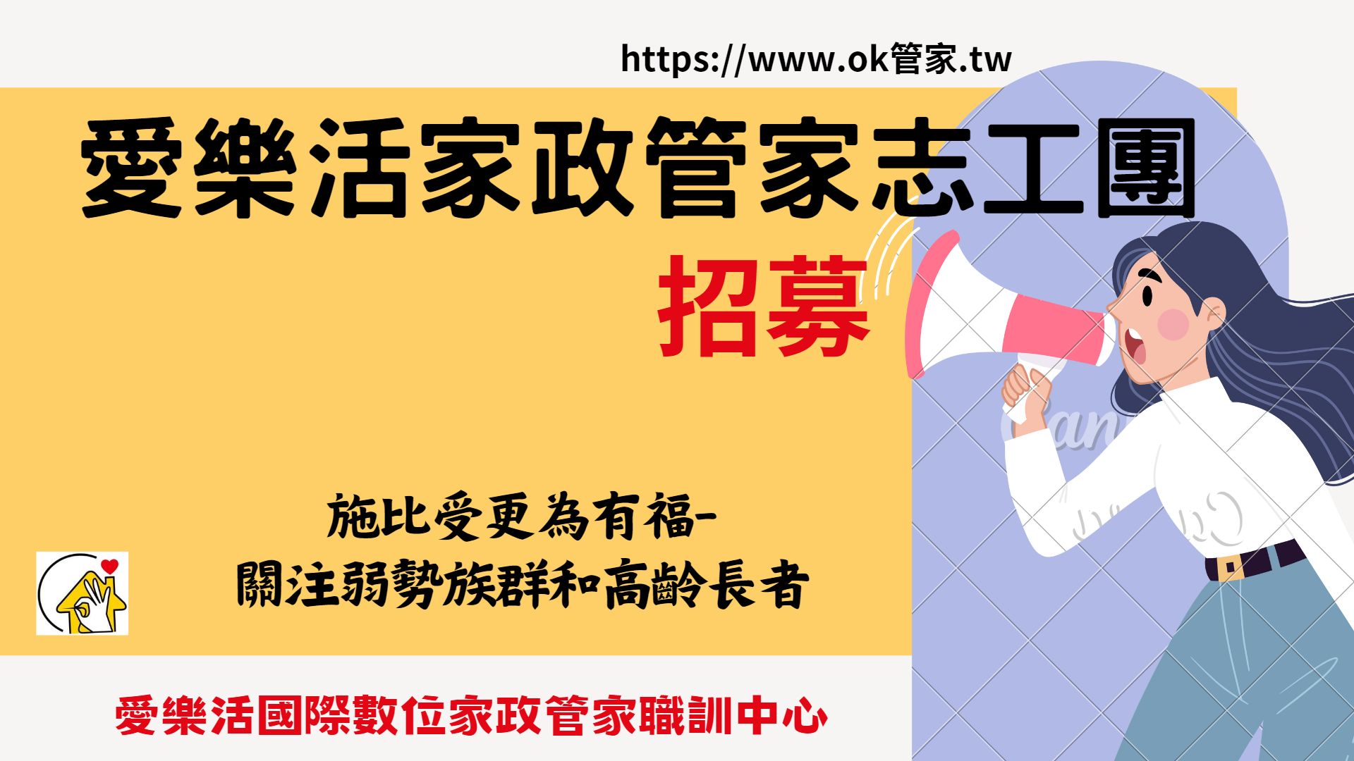 及說明愛樂活OK管家志工團的成立意義-歡迎你也響應社會服務工作一起來!
