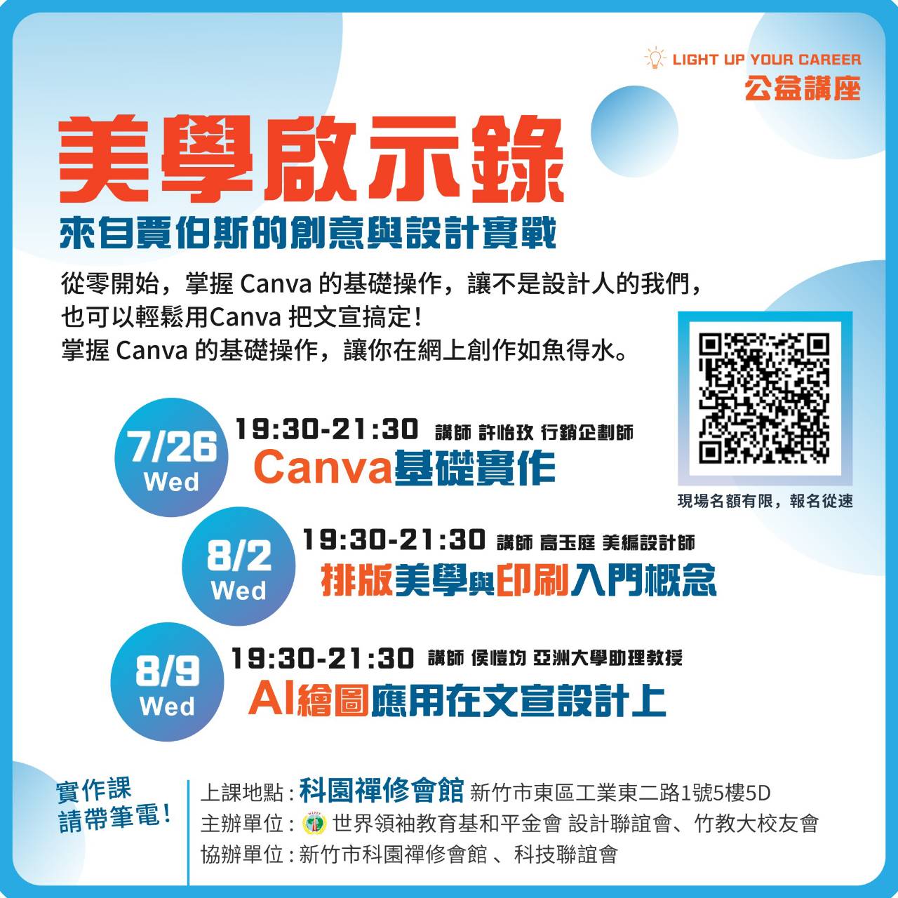 希望幫助夥伴精進設計力,我們設計了3堂入門課程,軟體選用取得方便又操作簡單的[Canva]。