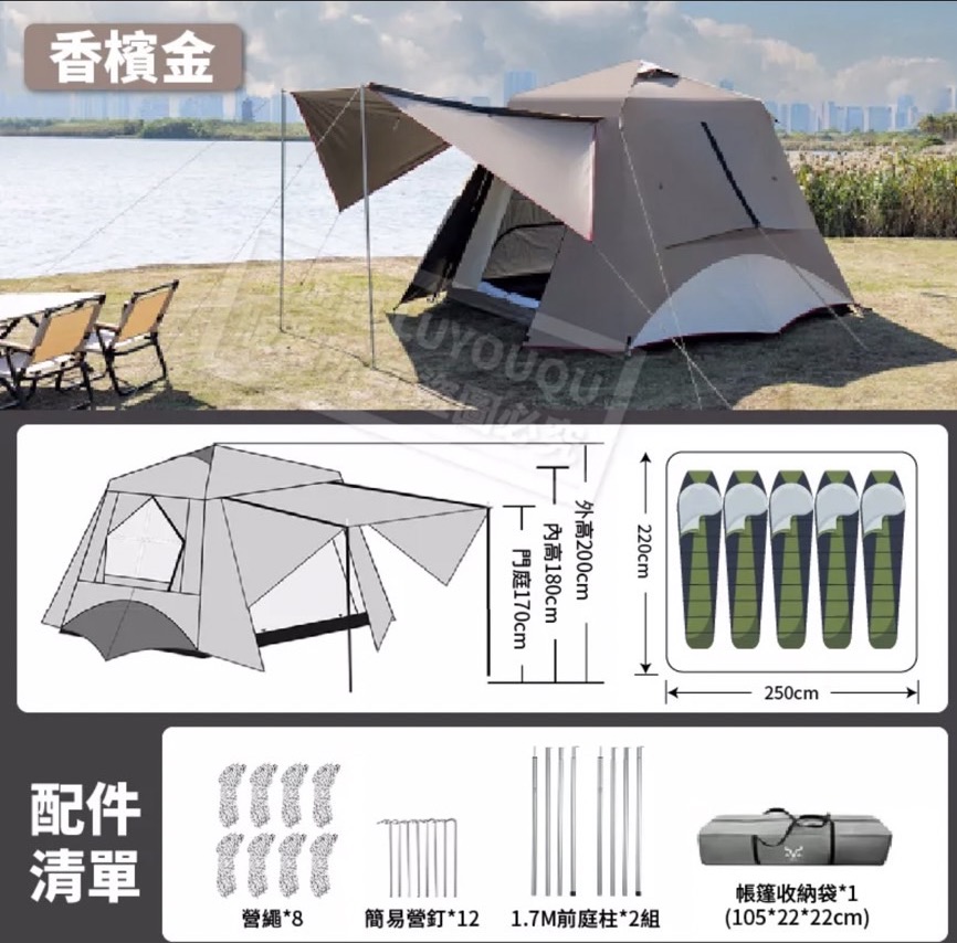 - 帳篷規格:(顏色隨機)