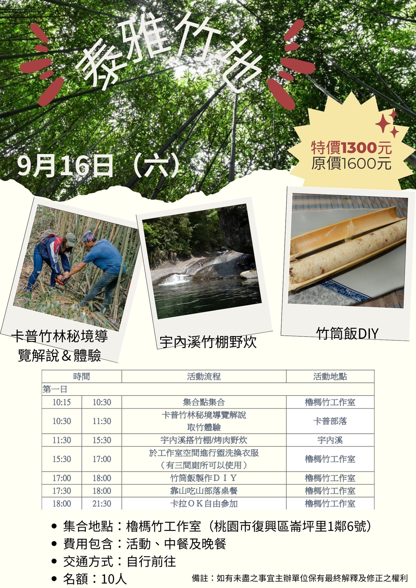 活動費用|特價1300元/人(原價1600元)