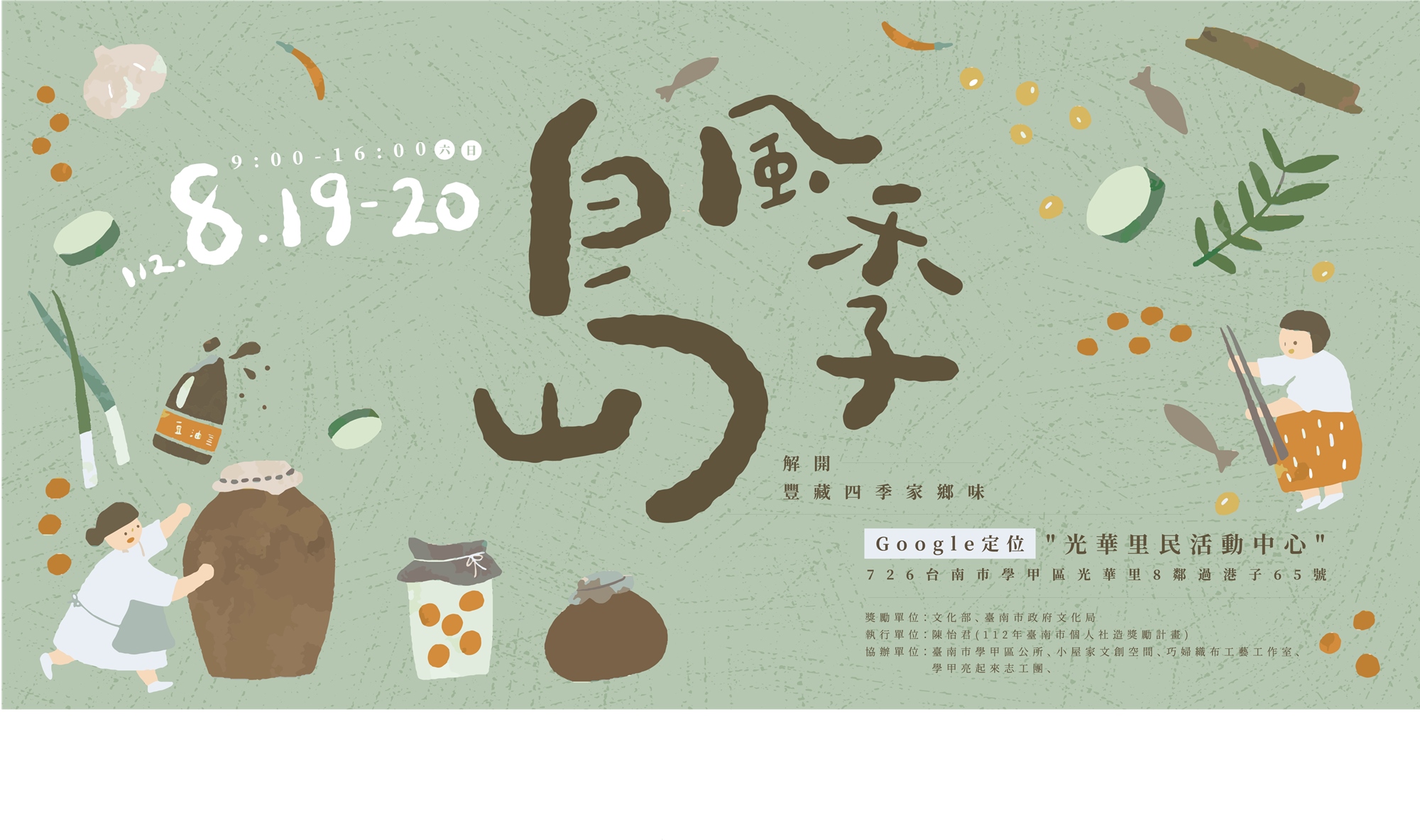 協辦單位:臺南市學甲區公所、小屋家文創空間、巧婦織布工藝工作室、醒麥味覺食驗室、學甲亮起來志工團