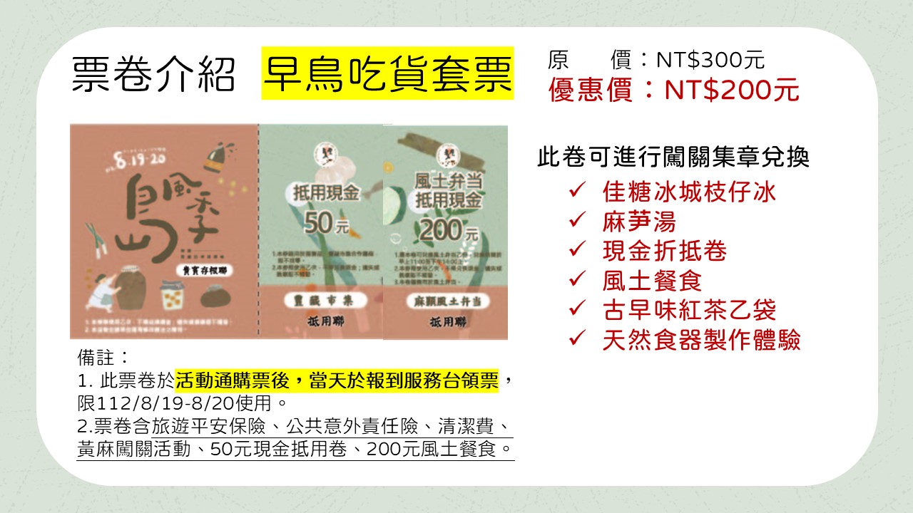 2.活動通 線上購票: 早鳥吃貨套票 NT$200元