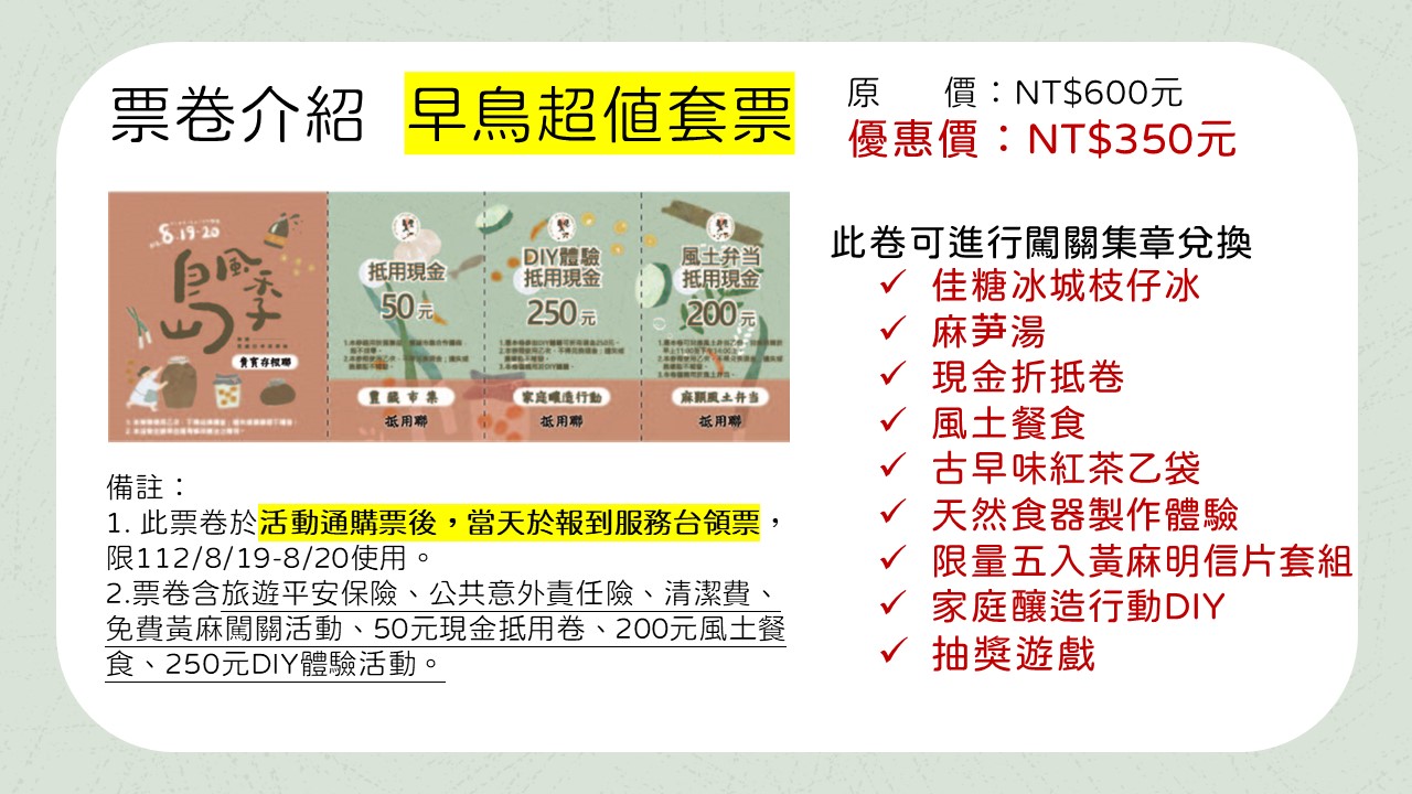 4.活動通 線上購票: 早鳥超值套票 NT$350元