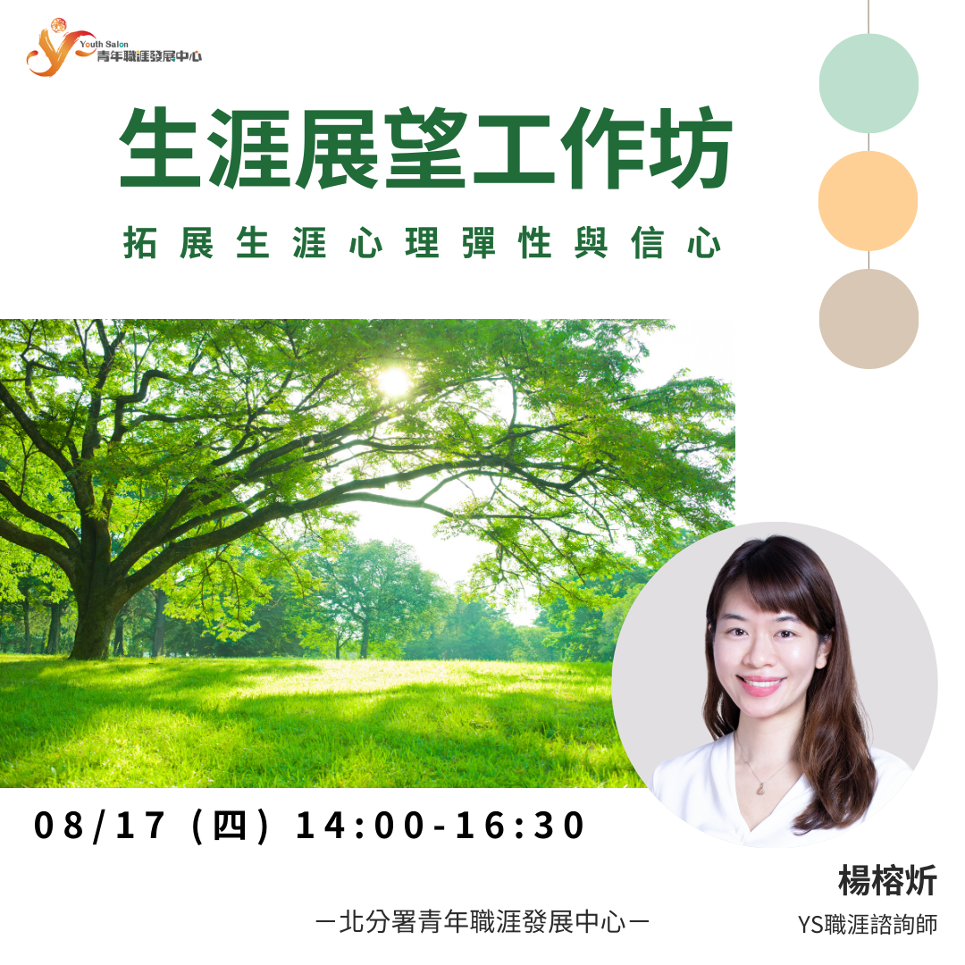 🚩 主題:『生涯展望工作坊-拓展生涯心理彈性與信心』 / 楊榕炘|職涯諮詢師