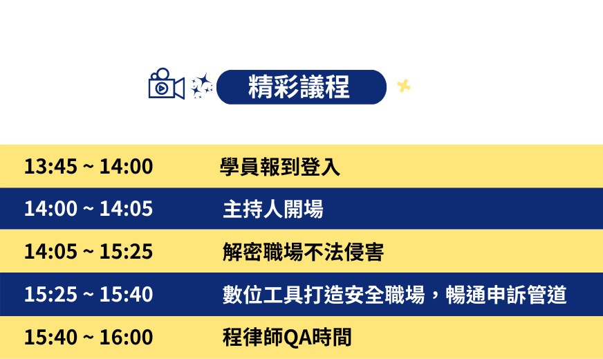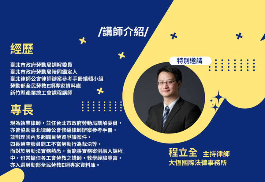 特別邀請台北市勞動局調解委員程律師帶您深入了解職場不法侵害!