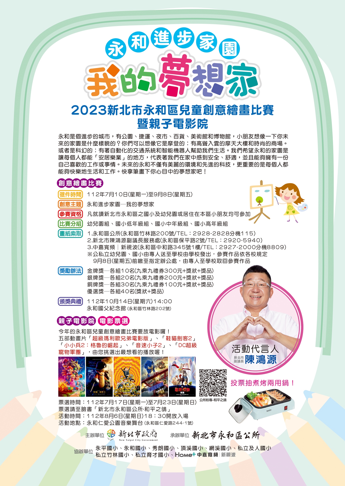 2023新北市永和區兒童創意繪畫比賽暨親子電影院開始囉!