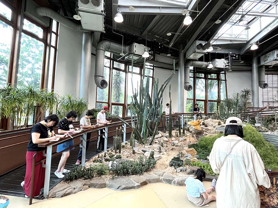 典藏植物園擁有多樣的植物,分成台灣原生植物區、熱帶、溫帶等區塊,除了能觀察豐富的色彩與形狀,還能體驗在不同環境中畫畫的氛圍。