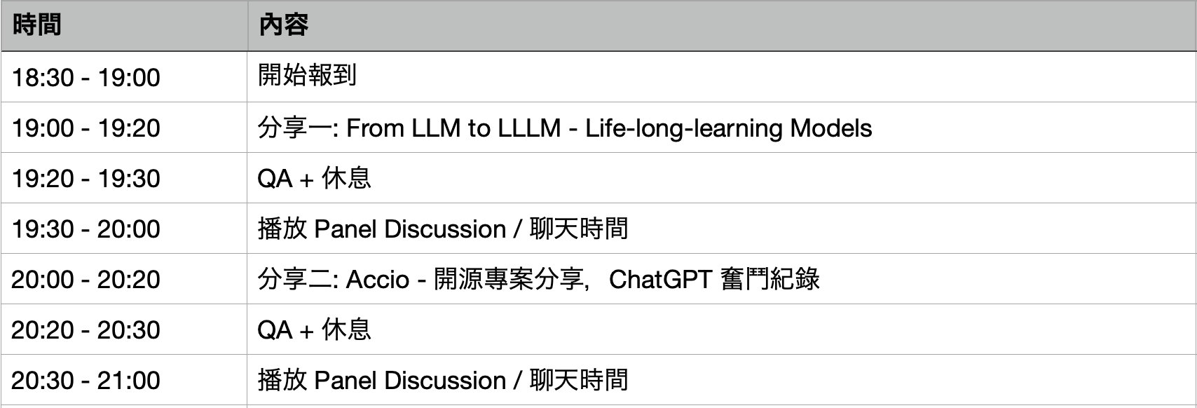 這次活動除了觀看 LangChain 的 Panel Discussion 外,也會邀請 LLM/AI 以及開源相關的業界人士來分享