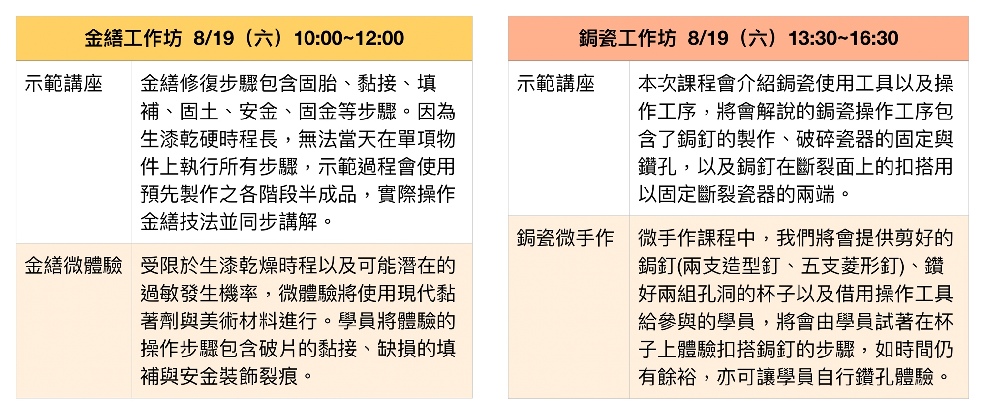 金繕工作坊 8/19(六)10:00~12:00