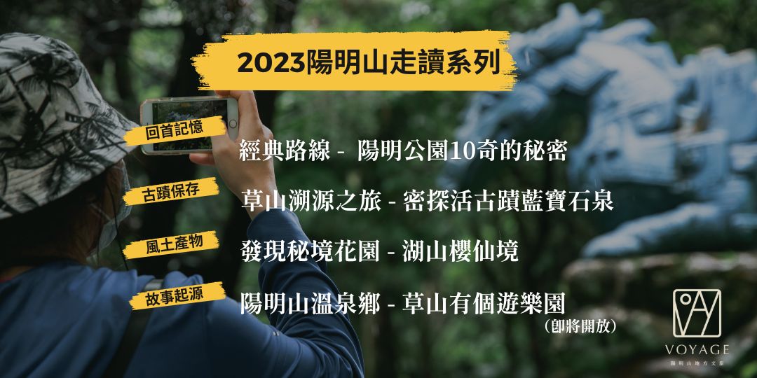 「帶你壯遊生活的每一個感動」透過陽明山在地小旅行、文化策展及職人訪談,與你一同認識陽明山的不同面貌