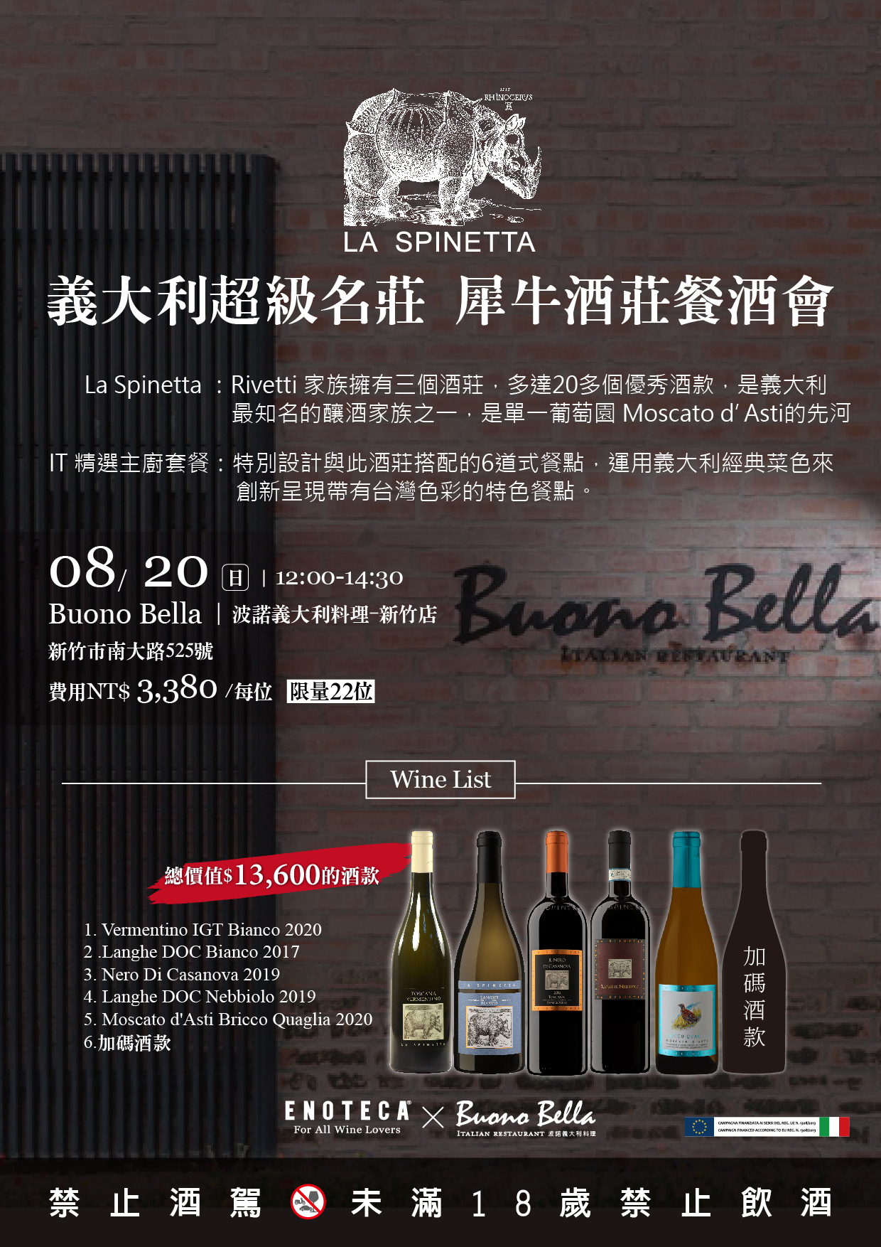ENOTECA與波諾義大利料理餐廳共同為您準備了一場味蕾與心靈共鳴的午間餐酒會!