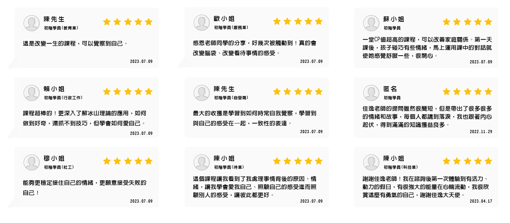 | 學員條件 | 無經驗可 | 無經驗可 | 需上過美好心關係 初階薩提爾工作坊 或具備冰山理論基礎 |