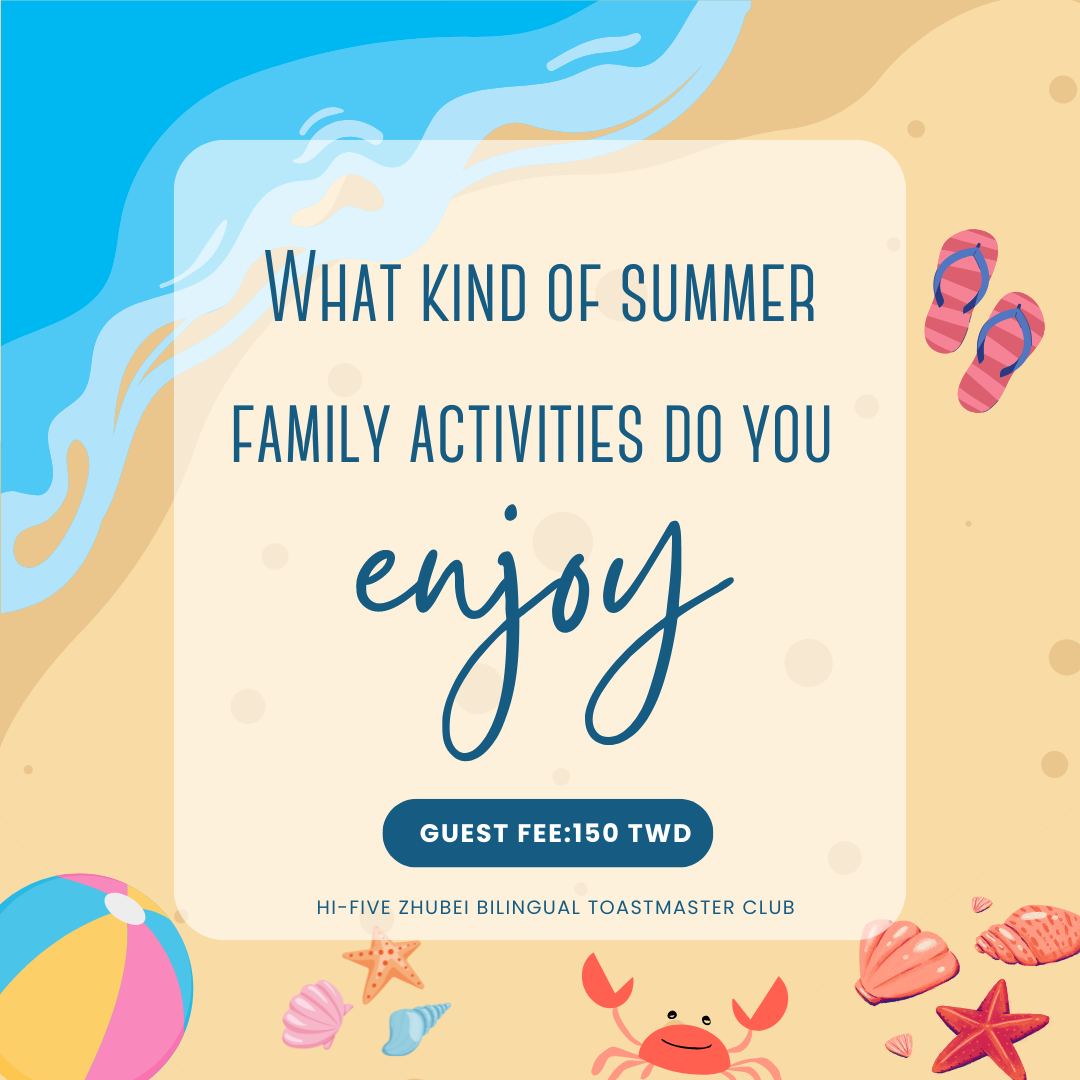 6. 即興分享 (Table Topic) --> 主持人會問幾個問題,例如你中秋節時喜歡在戶外烤肉還是到燒烤餐廳吃,之後請Guest或Member分享一下。