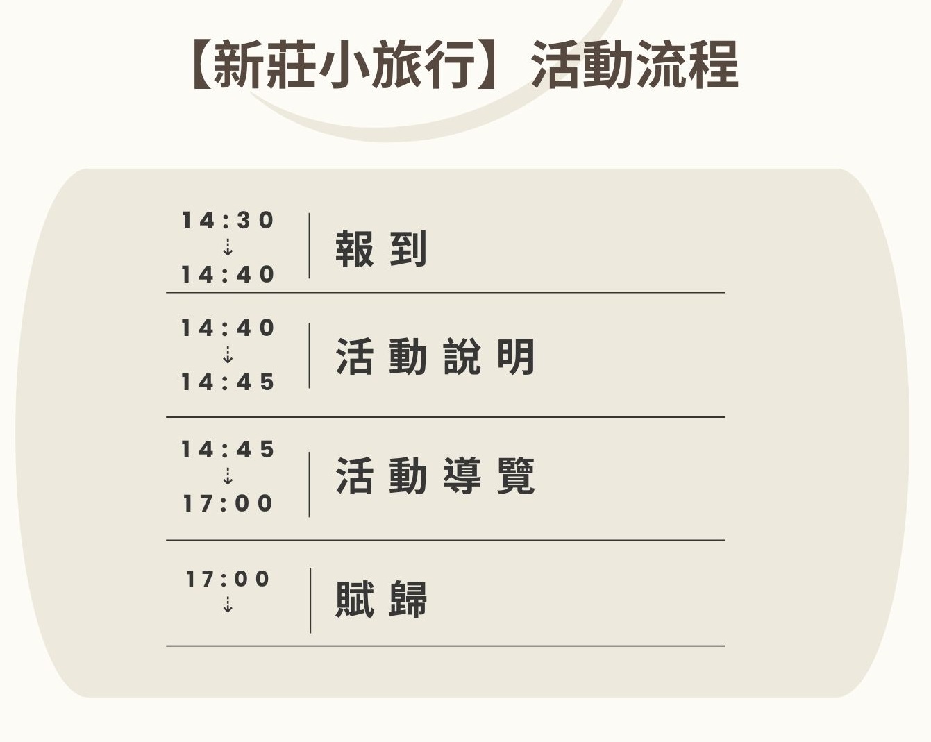 🚶♂️ 路線安排:捷運新莊站2號出口(集合)→廣福宮→文昌祠→文昌陸橋→慈祐宮→武聖廟→捷運新莊站2號出口(解散)。