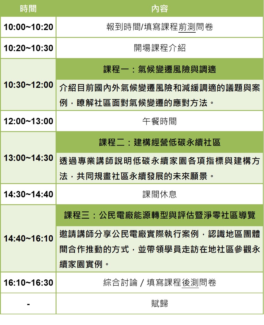 🏡 「112年淨零排放全民推廣訓練推廣課程 -社區人員班」(8場次):