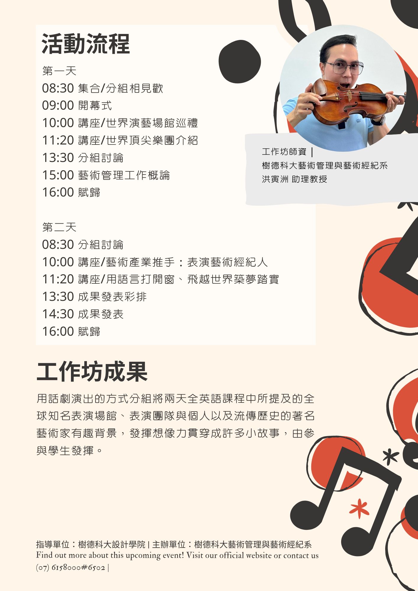 師資:樹德科大藝術管理與藝術經紀系洪寅洲老師