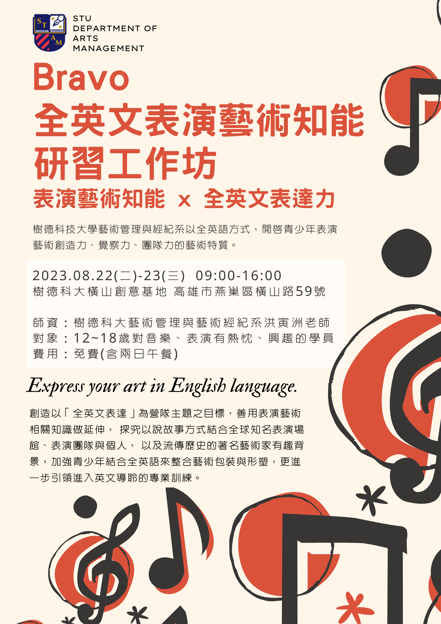 對象:12~18歲對音樂、表演有熱忱、興趣的學員