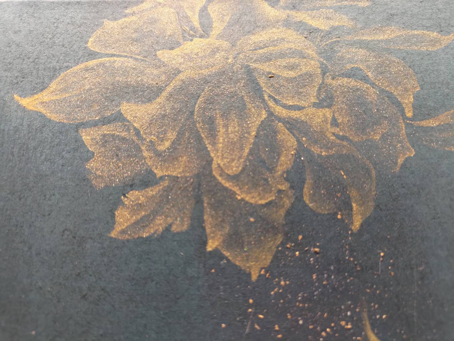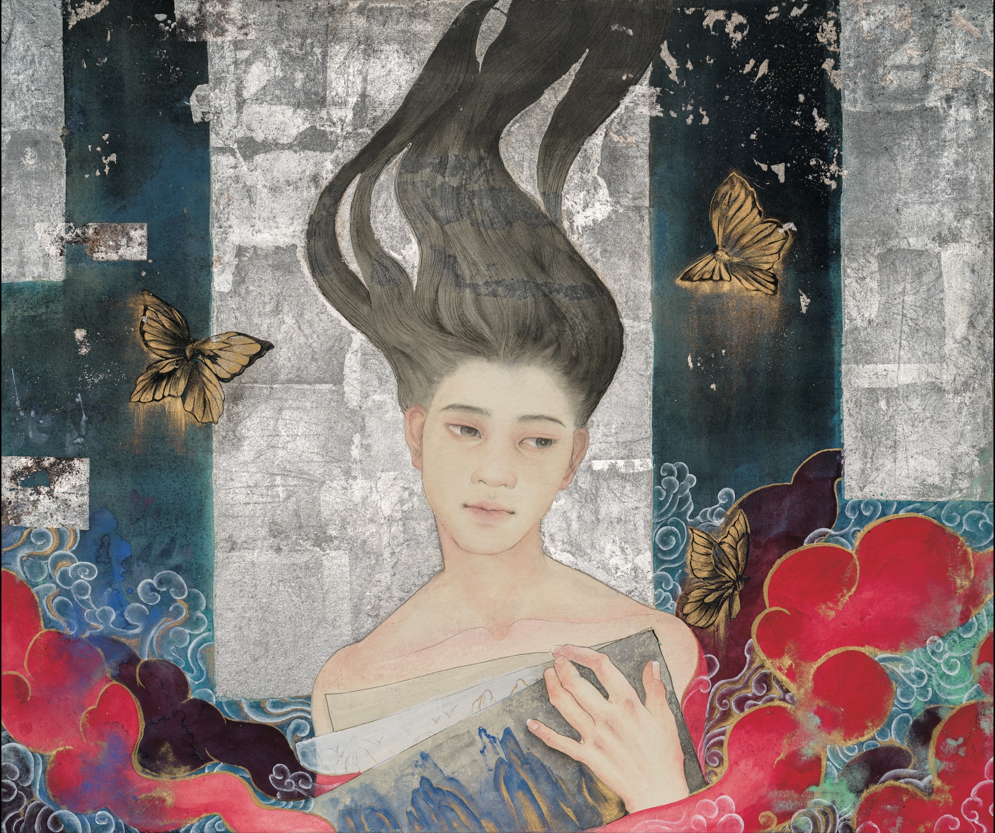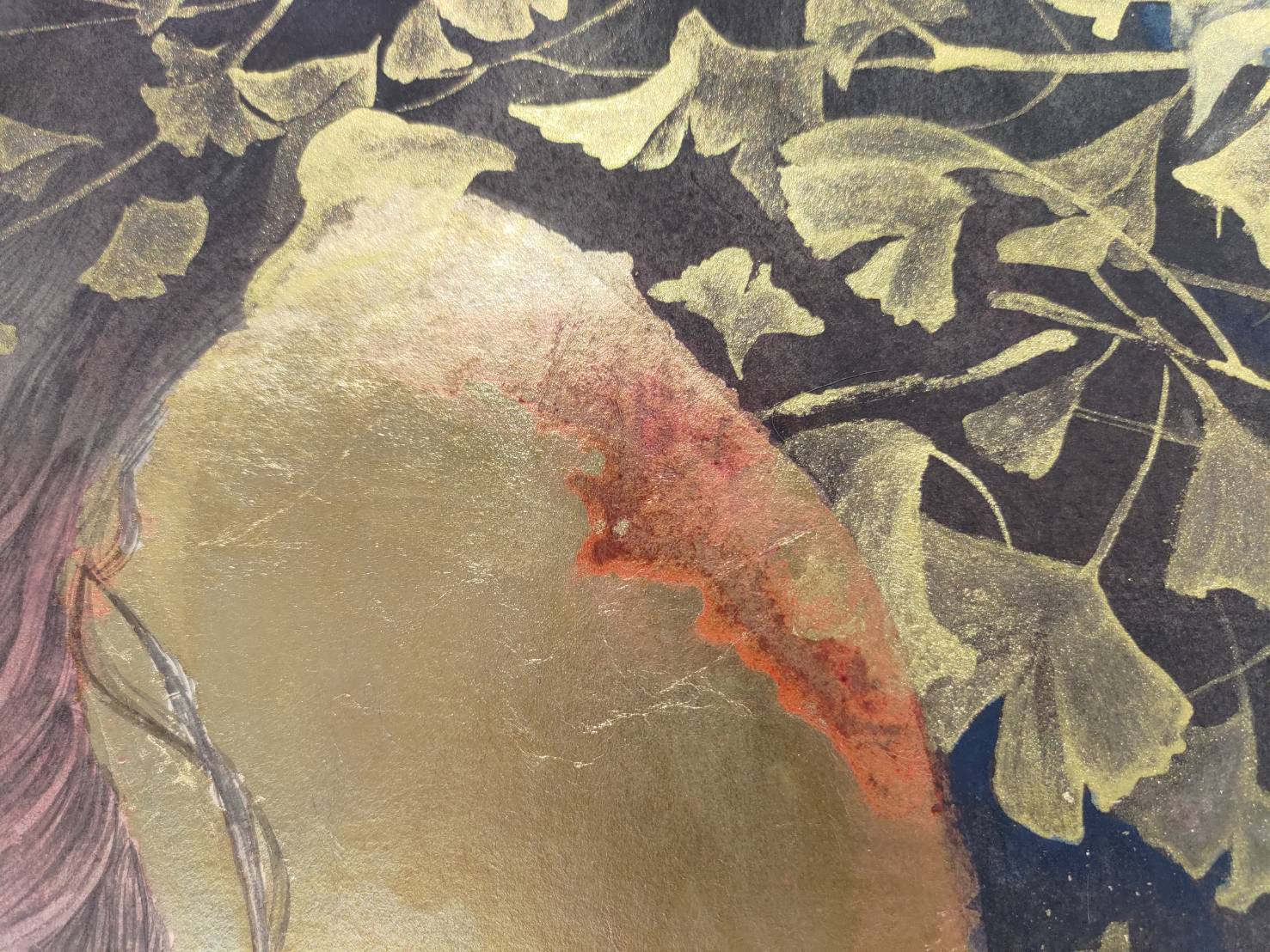 結合水墨、膠彩、金粉及金箔的畫作