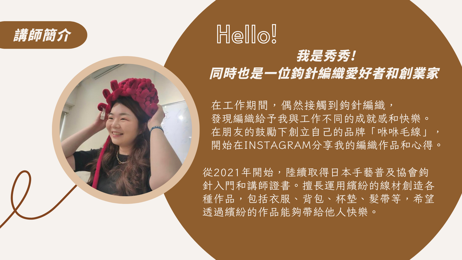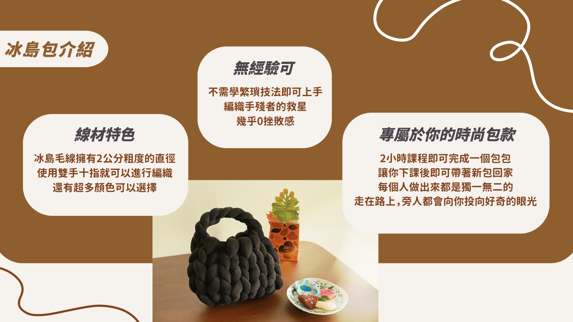 特別邀請到咻咻毛線創辦人 秀秀老師,以特別的「冰島毛線」教你編出屬於你的美美編織包。