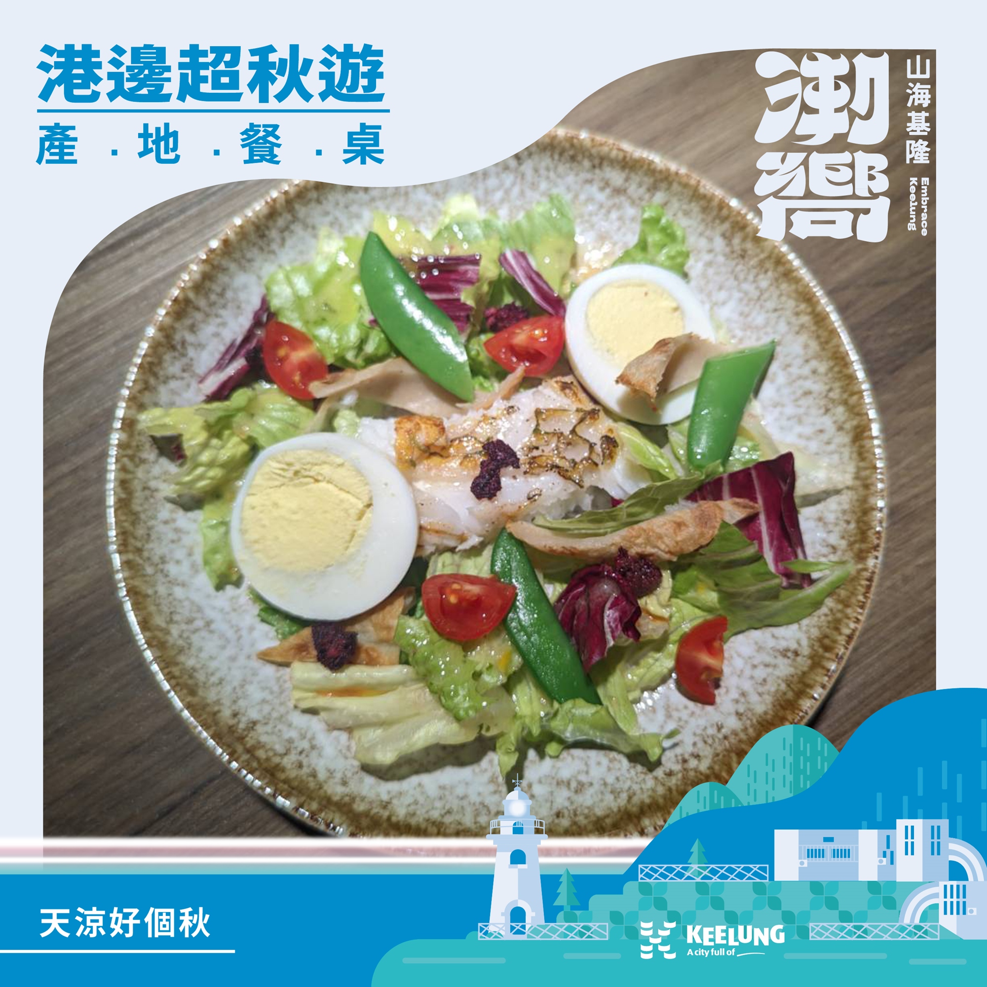 料理靈感來自於法國沿海著名的尼斯沙拉,運用了基隆在地的漁獲作為主要角色搭配酸甜清爽的油醋醬