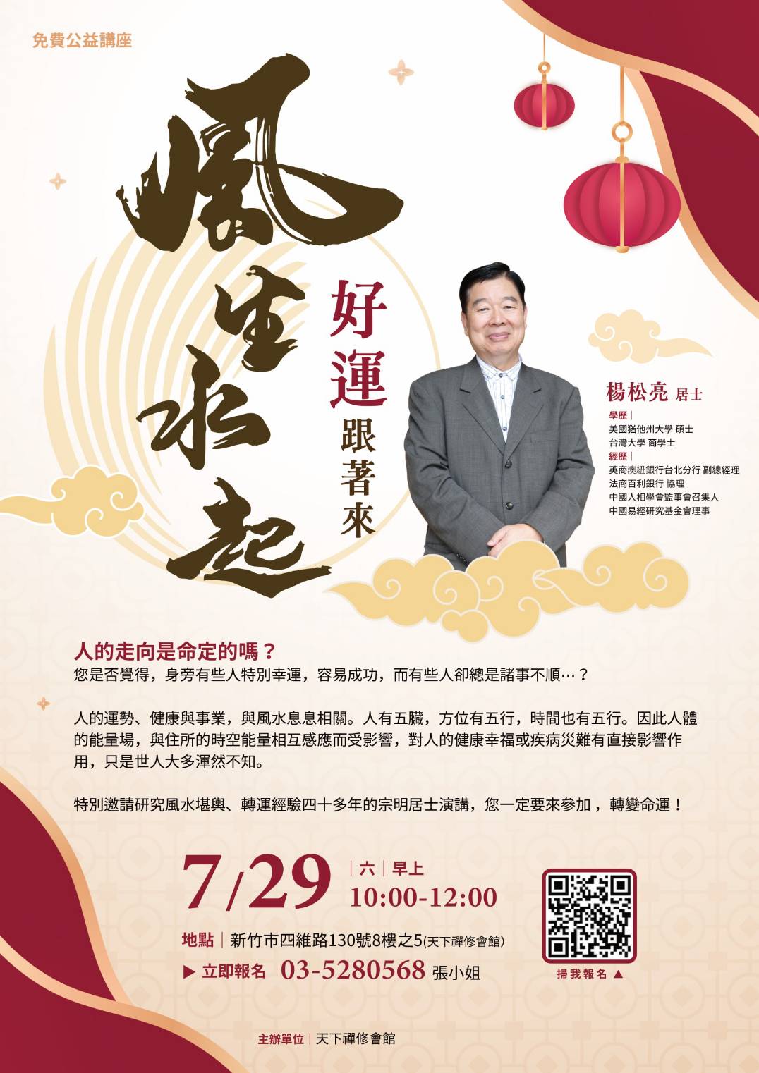 天下禪修會館,特別隆重邀請~研究風水堪輿、轉運經驗四十多年的