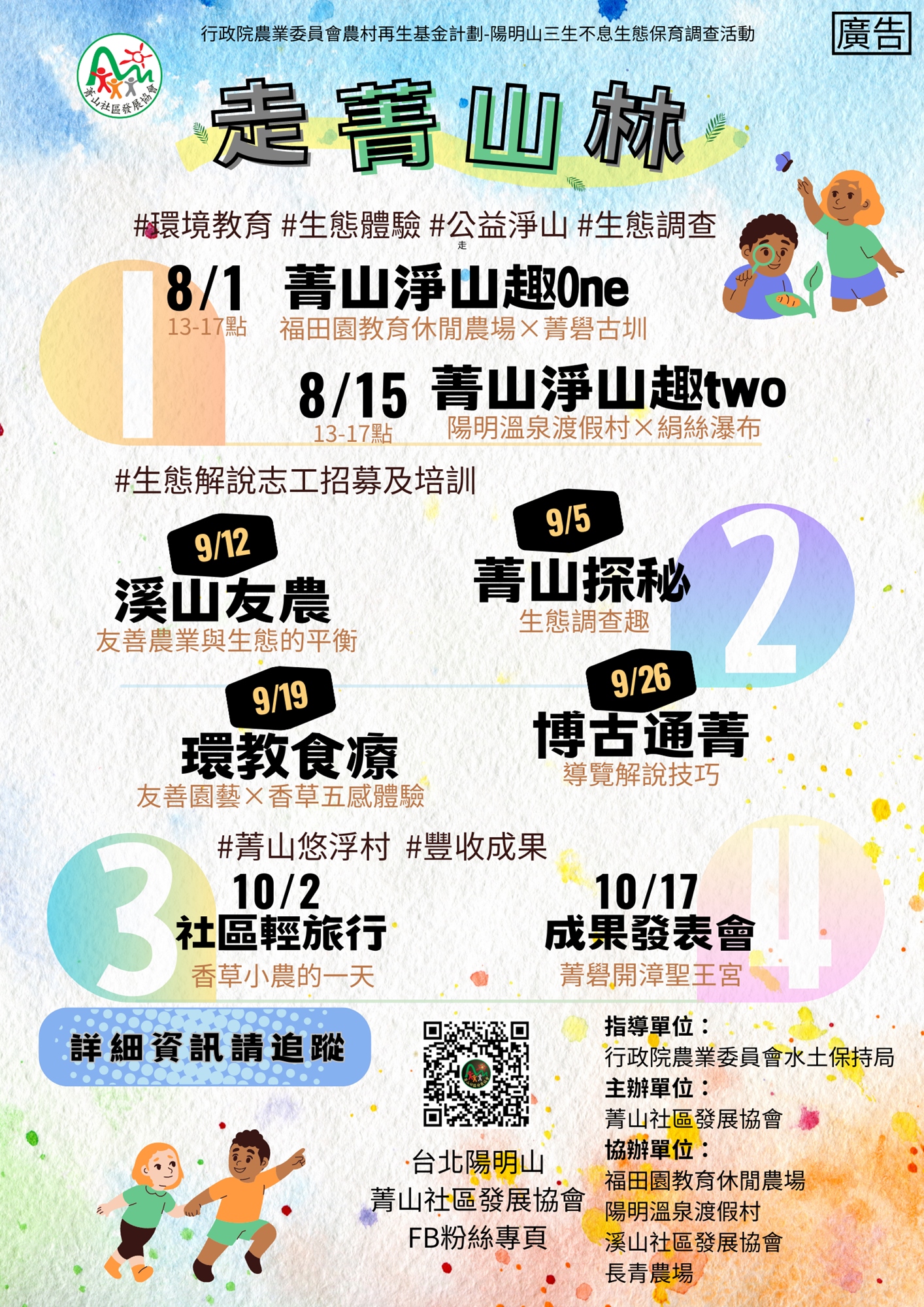 12、雨備方案:小雨-維持原計畫,大雨-改為室內生態課程活動,政府發布颱風假則取消。