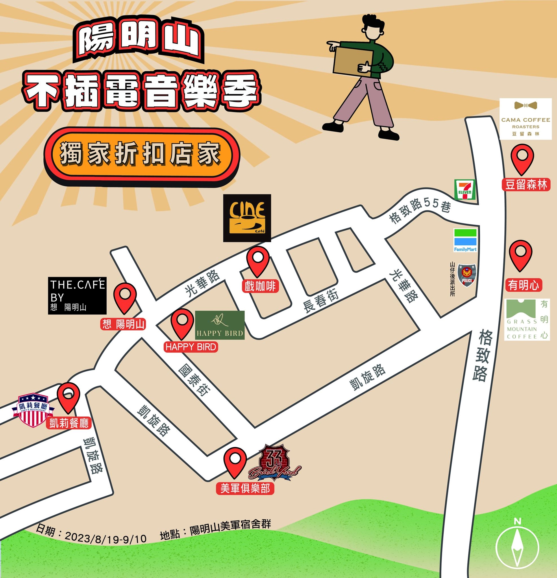 合作品牌:BRICK YARD 33 1/3 美軍俱樂部、The Cafe' By 想 陽明山、HAPPY BIRD快樂鳥地中海料理、豆留森林、凱莉餐廳、有明心、戲咖啡.Cine Café、活動通ACCUPASS