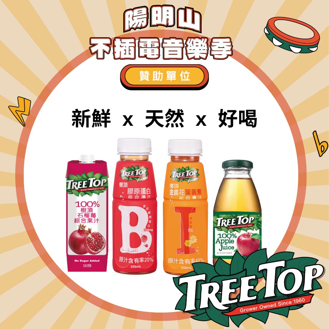 贈送本次限定「Tree Top樹頂」果汁 兩款(隨機不挑款)及 「活動散步地圖」乙份!