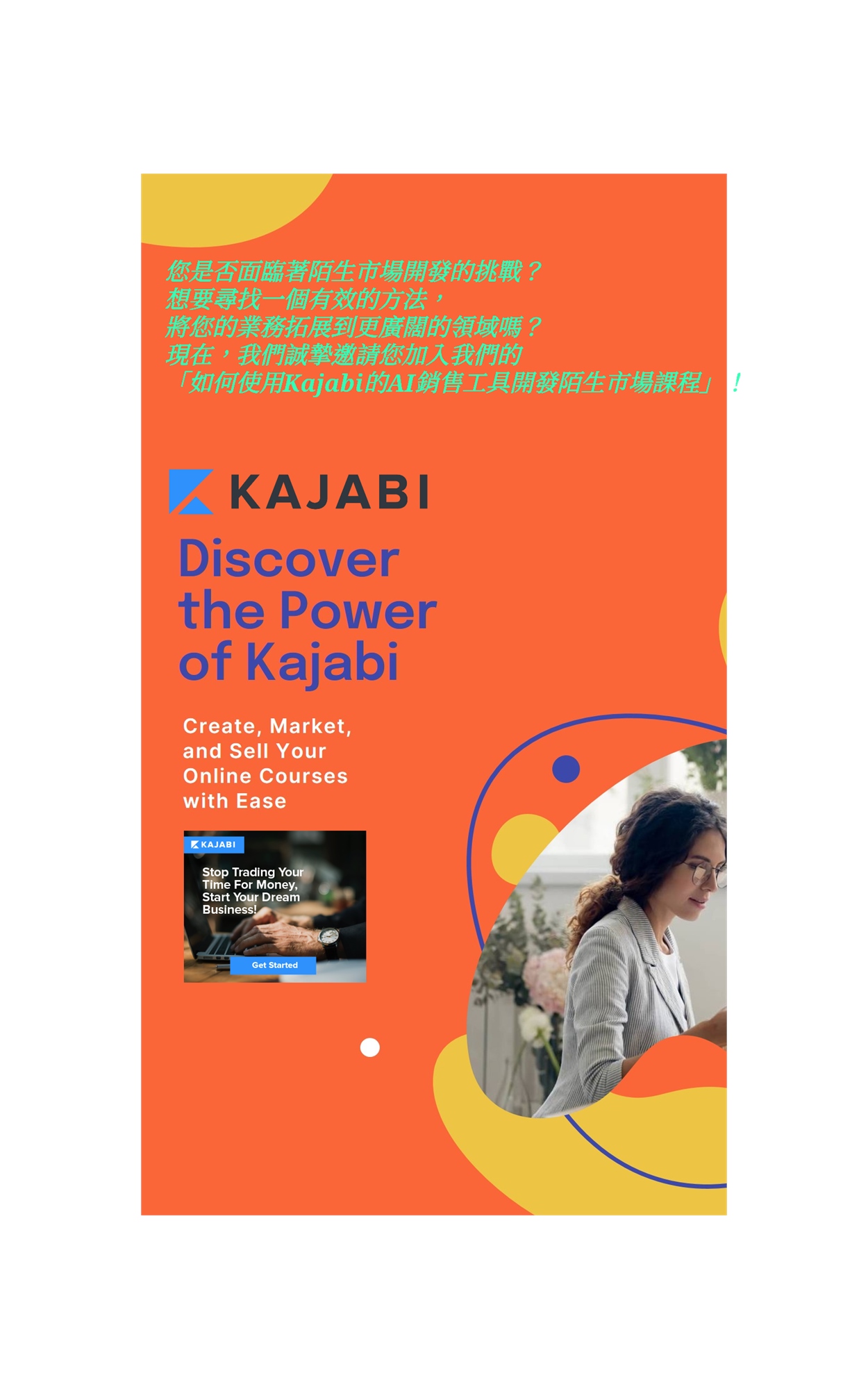 🚀 學會運用AI銷售工具:學習如何在陌生市場中利用Kajabi的AI銷售工具,自動化您的業務流程,節省時間並提高效率。