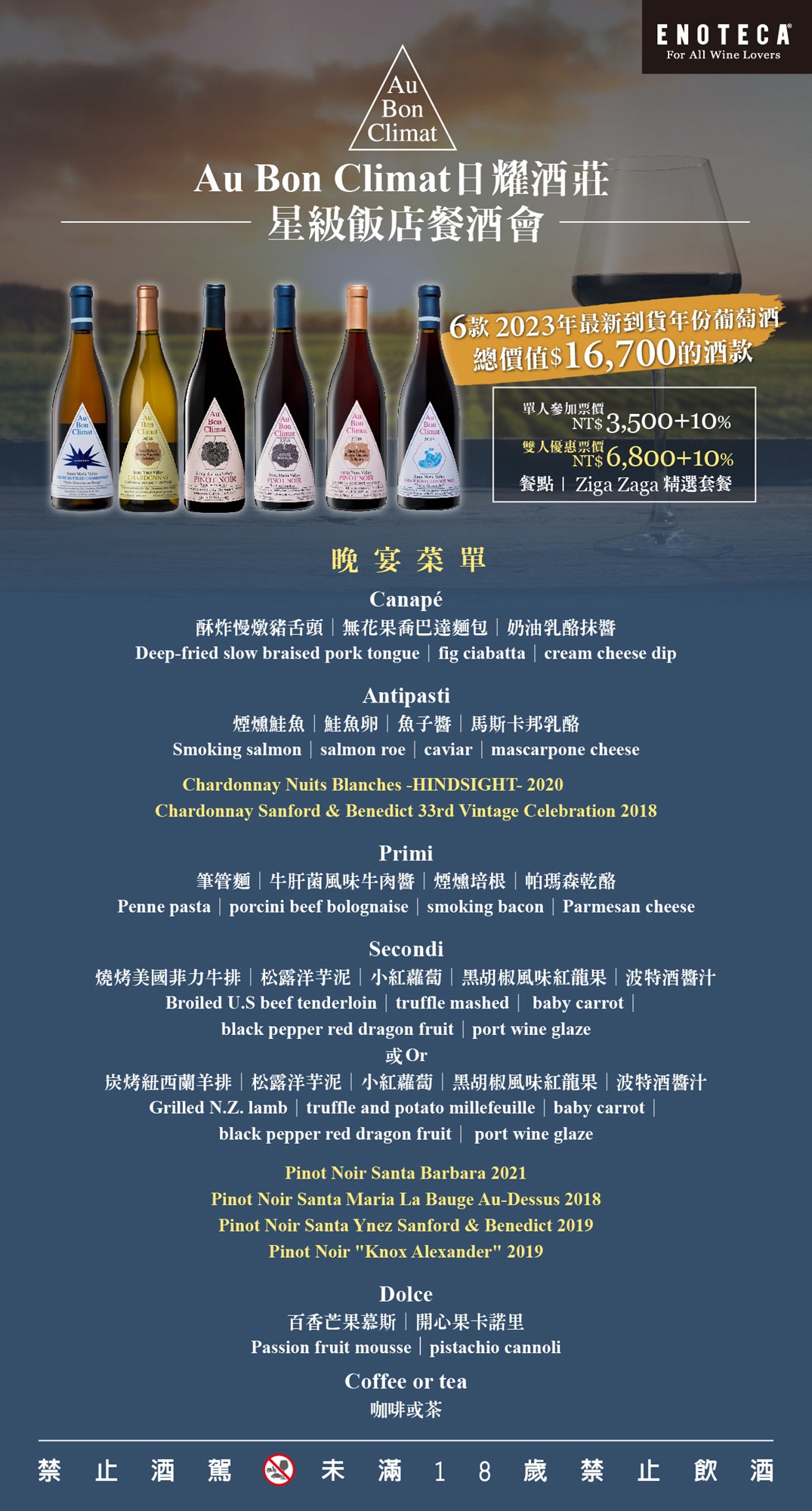 日耀酒莊Au Bon Climat在五星級台北君悅酒店舉辦餐酒會