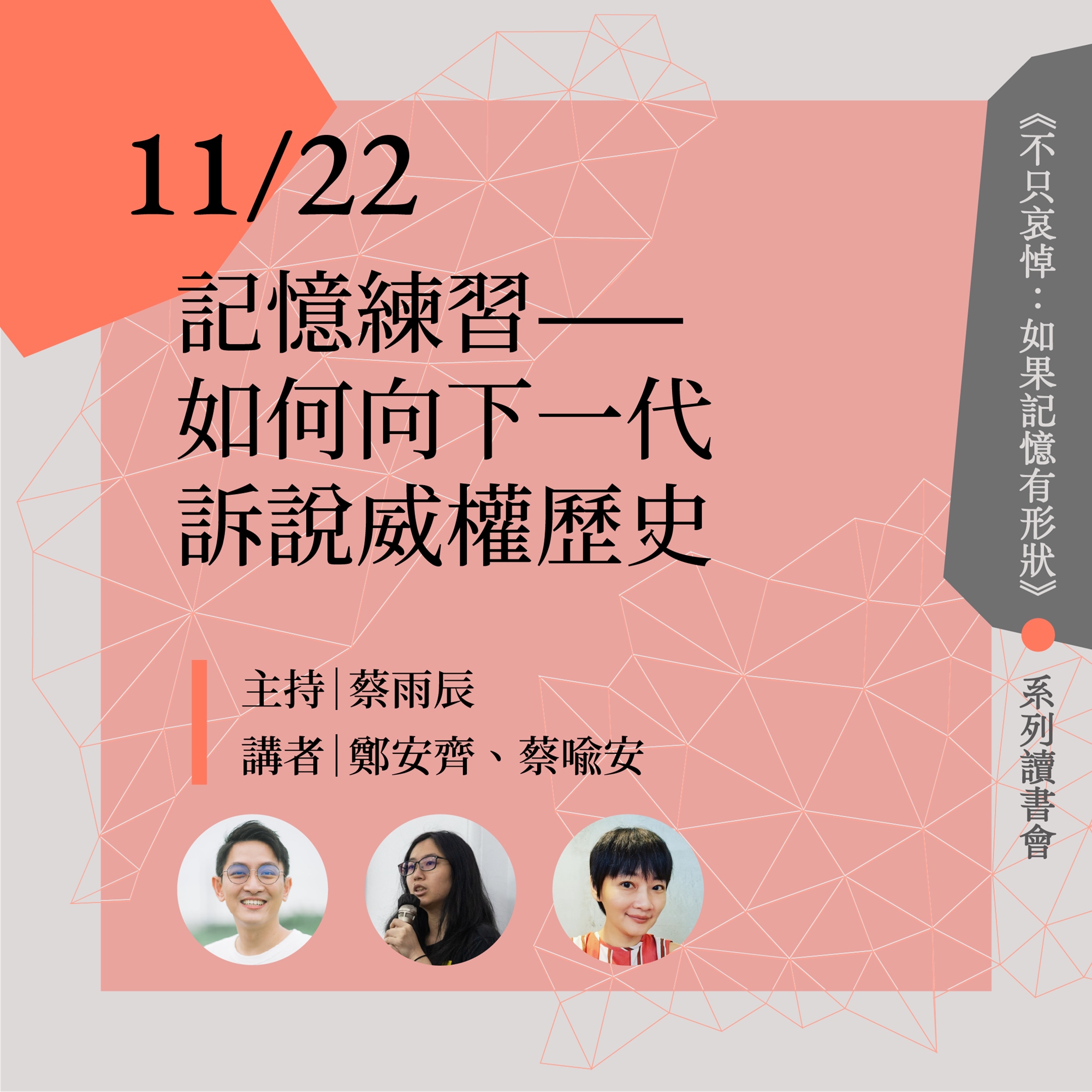 為此,沃時文化將舉辦重訪記憶現場:《不只哀悼:如果記憶有形狀》系列讀書會,作者鄭安齊將解說書中各型態的紀念案例,來自各專業領域的與談人將提出台灣幾個以「紀念」名之的空間,如何糾纏著國族、性別、階級等議題。在這些空間裡,誰能紀念,誰能被紀念,紀念等於記憶嗎,紀念之後我們真能記得嗎,誰的紀念才算數?