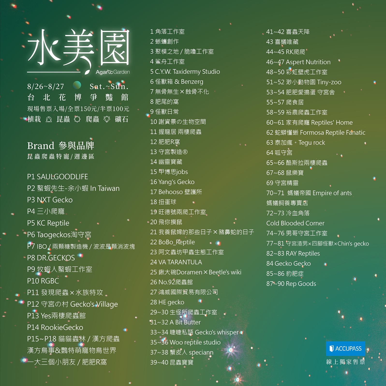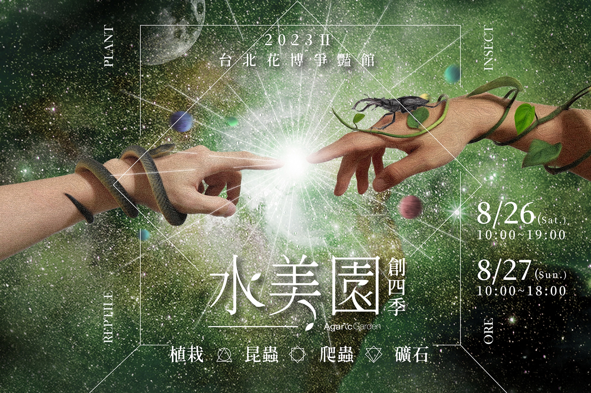眾所期待的水美園2023 Part2 ,全台唯一集結四大自然界產物的大型展會-「植物🌿、昆蟲🐜、爬蟲🦎、礦石🔮」,招募近200家品牌,內容橫跨多種植物品種收藏,園藝用品、生態缸、手作盆器、珍奇昆蟲爬蟲、特殊寵物、特寵用品、標本製作、原礦水晶收藏、主題公仔設計、主題文創設計等等,內容包羅萬象!