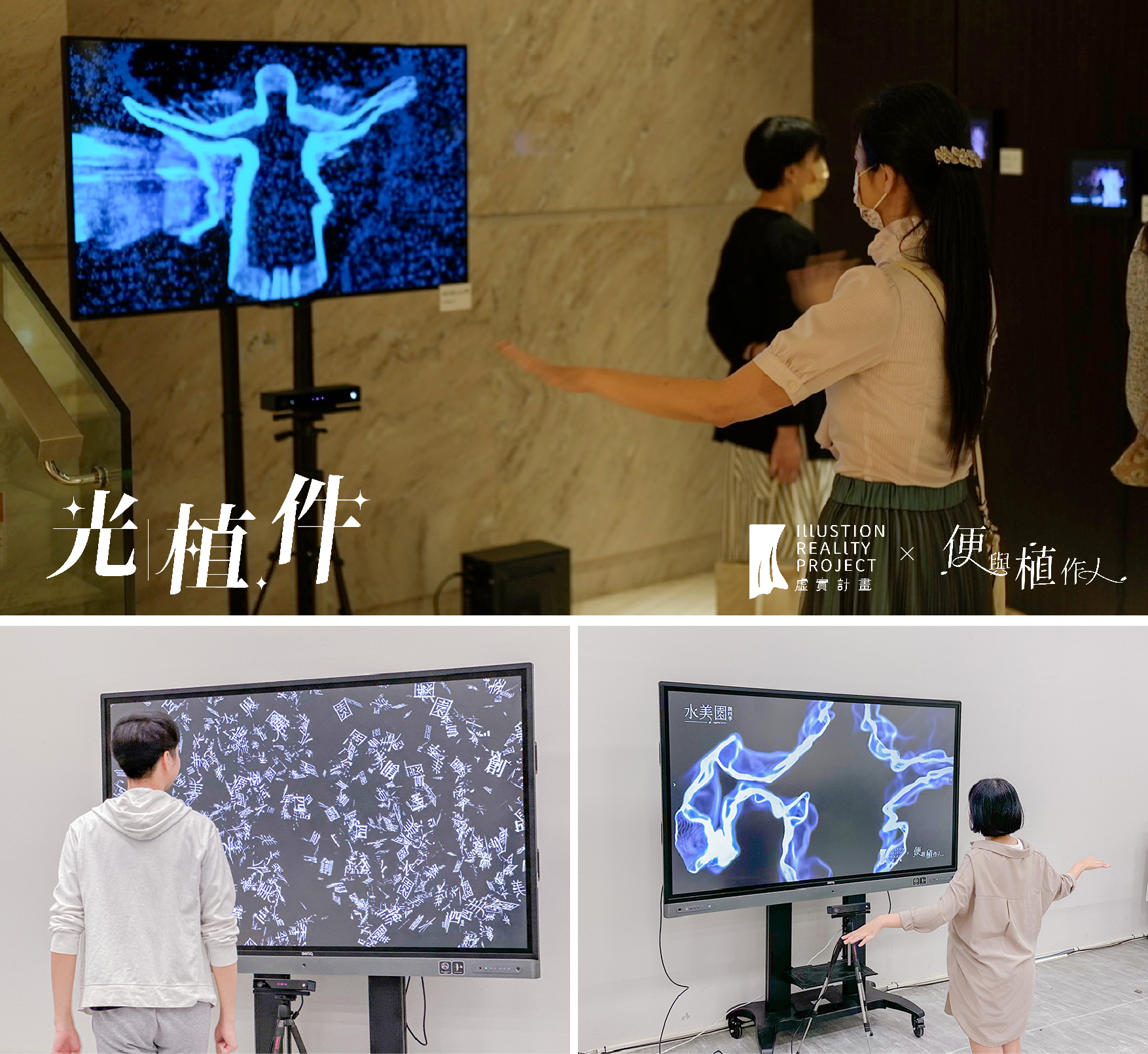 藉由有趣好玩的互動機制,讓使用者藉肢體來產生光影於螢幕中,而光影的效果呼應著植物的萬象,使水美園之參觀者能與安靜的植物進行一場對話。
