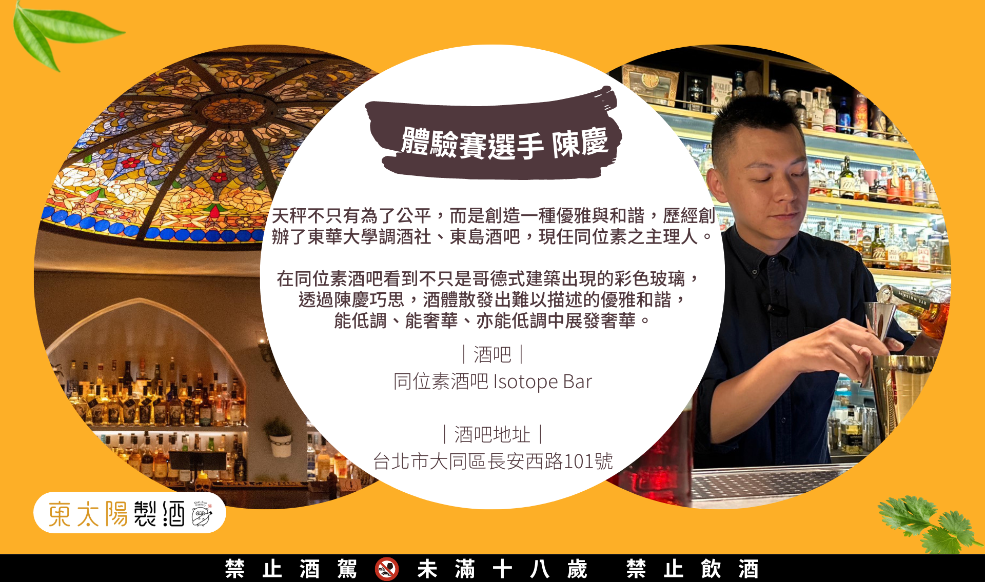 2.可享用參賽調酒師現場創作之調酒(各乙杯)